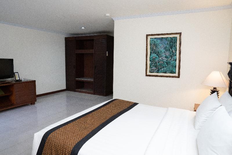El hotel es muy lindo y con acceso a la playa, la cual es linda pero tampoco excelente como en general en Indonesia. La habitación en la que estuvimos era linda, prolija pero un poco vieja, standard...