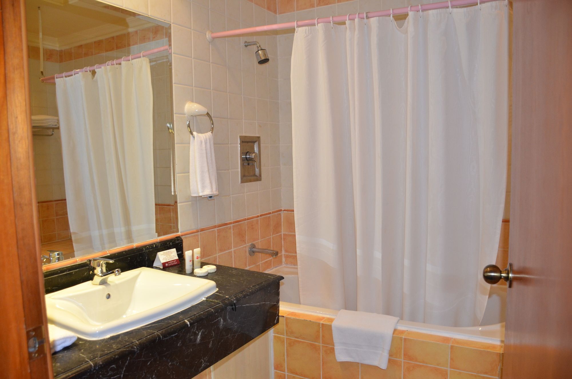 En Manama (Manama Center), a pocos minutos de Puerta de Bahréin y Zoco de Manama se sitúa Gulf pearl Hotel. Este hotel se encuentra cerca de Centro comercial Yateem Centre y de Complejo comercial Bahrain Financial Harbour. Reserva una de las 75 habitaciones climatizadas, todas equipadas con chimenea y televisor LED. La conexión a Internet wifi gratis te mantendrá en contacto con los tuyos; también podrás ver tu programa favorito en el televisor con canales digitales. El baño privado con ducha y bañera combinadas está provisto de bañera profunda y artículos de higiene personal gratuitos. Entre las comodidades, se incluyen caja fuerte y escritorio, además de un servicio de limpieza disponible todos los días. Disfruta de una gran variedad de instalaciones recreativas, entre ellas discoteca, piscina cubierta y bañera de hidromasaje. Otros servicios de este hotel incluyen conexión a Internet wifi gratis, servicios de conserjería y servicio de peluquería. El servicio de transporte (de pago) te llevará a varios puntos imprescindibles de la zona. Acércate a uno de los 5 restaurantes y 2 cafeterías de este hotel para comer algo, o aprovecha el servicio de habitaciones las 24 horas. Disfruta de un detalle de bienvenida gratuito organizado por la recepción todos los días, donde podrás conocer a otros huéspedes mientras tomas un bocado. Relájate con un buen refresco en el 2 bares con salón. Tendrás centro de negocios abierto las 24 horas, periódicos gratuitos en el vestíbulo y servicio de tintorería a tu disposición. Se ofrece servicio de transporte al aeropuerto (ida y vuelta) gratuito (disponible las 24 horas).