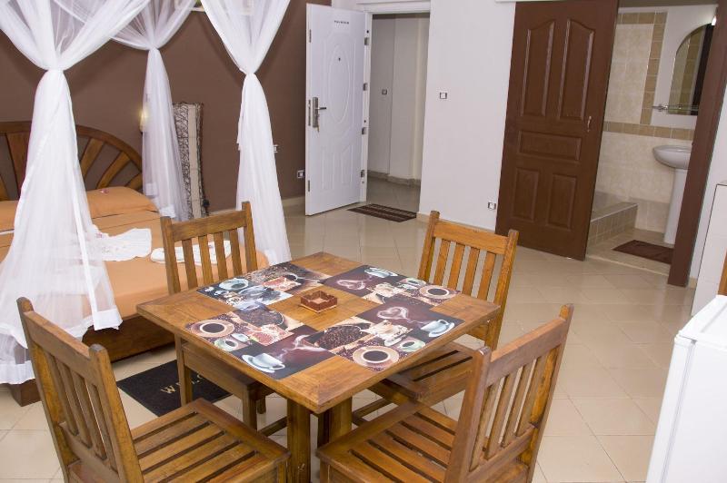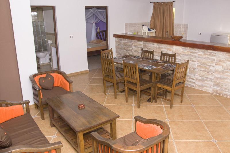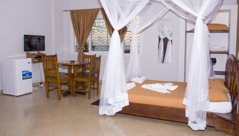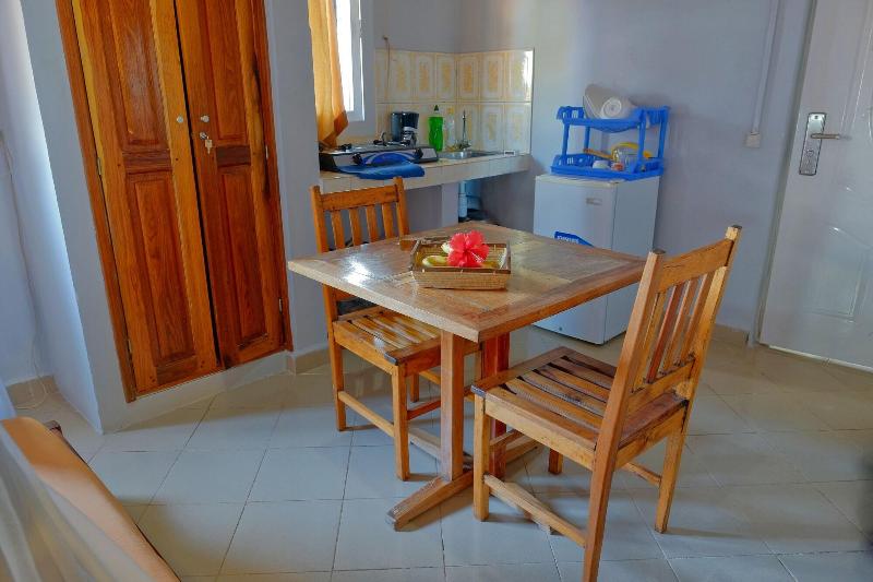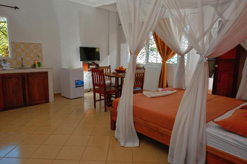 Disfruta de impresionantes vistas desde la terraza del Hôtel Résidence Au Sable Blanc y aprovecha el wifi gratis y los servicios de conserjería. Saborea una comida en el restaurante LA TERRASSE o disfruta de un tentempié en la cafetería. El servicio de habitaciones también está disponible en horario limitado. Empieza el día con un desayuno continental, que se sirve todos los días de 7:30 a 11:00 con un cargo adicional. Este hotel de playa ofrece prácticas comodidades como servicio de tintorería/lavandería, personal multilingüe y consigna de equipaje. Hay traslados al aeropuerto disponibles con un recargo (previa solicitud), y se proporciona aparcamiento gratuito en las instalaciones. Alójate en una de las 15 cómodas habitaciones, cada una equipada con wifi gratis y baño privado con ducha, artículos de aseo gratuitos y secador de pelo. Para tu comodidad, se proporcionan ventiladores y el servicio de limpieza se ofrece a diario. El Hôtel Résidence Au Sable Blanc está convenientemente ubicado a solo 0, 5 km de la playa de Madirokely y a 16, 6 km de la Reserva Natural de Lokobe, con el Parque Nacional de Nosy Tanikely también a poca distancia. El aeropuerto más cercano es Nossi-Be (NOS-Fascene), a unos 20, 6 km.