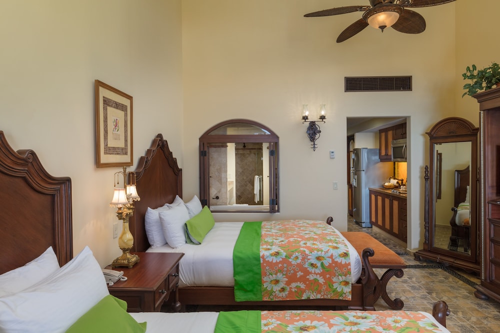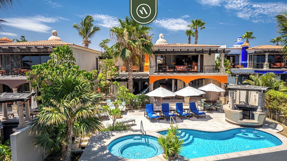 Las instalaciones y servicios incluyen recepción las 24 horas, ascensor, restaurante, bar, piscina, jacuzzi, club infantil y spa (cargo extra).Las habitaciones cuentan con sala y comedor, cocina americana, balcón o terraza, cuarto de baño con hidromasaje, caja fuerte, cafetera, aire acondicionado, teléfono, reproductor DVD, secador de pelo, mini-bar, microondas y televisión.La Master suite cuenta con un sofá cama.Las villas residenciales cuentan con piscina, jacuzzi, hamaca, aparcamiento privado, albornoz, zapatillas y bañera.** Tenga en cuenta que algunos de los servicios mencionados pueden estar cerrados debido a las condiciones climáticas o de la temporada.**En caso de elegir la opción de "Todo Incluido":El concepto de Todo Incluido comprende todas las comidas (desayuno, comida, cena y snacks) y las bebidas junto a las comidas tales como refrescos, cerveza, vino, agua y bebidas alcohólicas, todas de marcas locales.Las bebidas se sirven desde la mañana hasta la noche (aproximadamente 22.00-24.00h).El horario de apertura puede variar según el hotel.En algunos hoteles además se incluye un programa de actividades.Dirección: Carretera Transpeninsular km.7.3, 23450 Los Cabos, Baja California Sur, México.