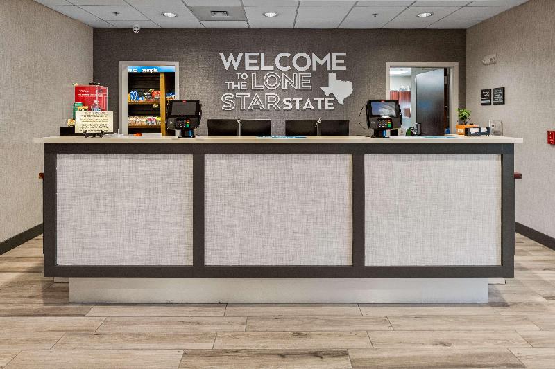 Con una ubicación céntrica entre Waco y Austin, TX, el Hampton Inn Temple ofrece fácil acceso a la Interestatal 35, el Scott & White Hospital, y las tiendas, entretenimiento y restaurantes del cercano Temple Colonial Mall. El Frank W. Mayborn Civic and Convention Center y The Bell County Expo Center están a solo ocho kilómetros de nuestro moderno hotel en Temple, TX. Visita las atracciones cercanas de Temple, incluyendo el Lions Junction Family Water Park, el Temple Railroad & Heritage Museum, The Czech Heritage Museum and Genealogy Center y Belton Lake. Los huéspedes corporativos pueden disfrutar de la cercanía a McLane Company y las instalaciones de WilsonArt, ambas fácilmente accesibles desde nuestro hotel en Temple, TX. Acomódate en una cómoda habitación o suite, donde puedes revisar tus correos electrónicos con wifi gratis, trabajar cómodamente con el práctico escritorio portátil, enfriar bebidas en el mini refrigerador, calentar bocadillos en el microondas y dormir profundamente en la limpia y fresca cama Hampton®. Aprovecha al máximo tu tiempo libre con las fantásticas comodidades de este acogedor hotel en Temple, TX. Recarga energías con una sesión de ejercicio en el gimnasio gratuito, refréscate en la piscina al aire libre y compra bocadillos y bebidas en la Suite Shop abierta las 24 horas. Cada mañana, acompáñanos para disfrutar del desayuno caliente buffet gratis de Hampton y mantente conectado en el centro de negocios gratuito, que ofrece útiles servicios como impresión y fax. Servicio amable, habitaciones limpias, un entorno confortable, siempre. Si no estás satisfecho, no esperamos que pagues. Ese es nuestro compromiso y tu garantía. Eso es 100% Hampton®.
