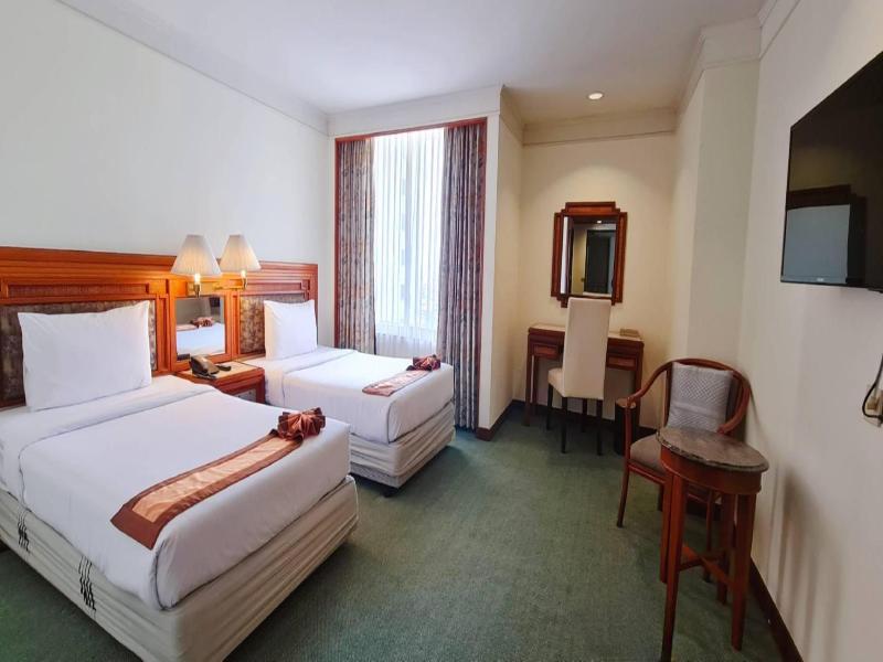 Ubicado en una amplia sección del complejo comercial Jootee Boonsoong, el hotel se encuentra a menos de 1 km del centro de Hat Yai y a 20 minutos del aeropuerto. Este hotel urbano ofrece un total de 30 habitaciones. Sus instalaciones y servicios incluyen vestíbulo, recepción y servicio de salida 24 horas, ascensor, sala de televisión, restaurante, cafetería, salas de conferencias, servicio de habitaciones 24 horas, servicio de lavandería y tintorería, y un aparcamiento de 6 plantas. Las habitaciones disponen de aire acondicionado central, TV vía satélite (UBC) y canales tailandeses, radio, películas gratuitas, teléfono con línea directa internacional, caja fuerte, minibar, secador de pelo y baño completo. Las camas son dobles o extragrandes. También cuentan con terraza. Puedes disfrutar de la piscina, el gimnasio totalmente equipado, el estudio de aeróbic, la sauna y los servicios de masaje tailandés. La cafetería ofrece lo mejor de la cocina tailandesa e internacional, además de una terraza con barbacoa al aire libre. El desayuno y el almuerzo se sirven en forma de bufé, mientras que la cena está disponible a la carta y se acompaña de entretenimiento en vivo. El restaurante ofrece la mejor cocina china, servida en un espléndido ambiente de casa china. Está abierto para el almuerzo y la cena, y dispone de salones privados.