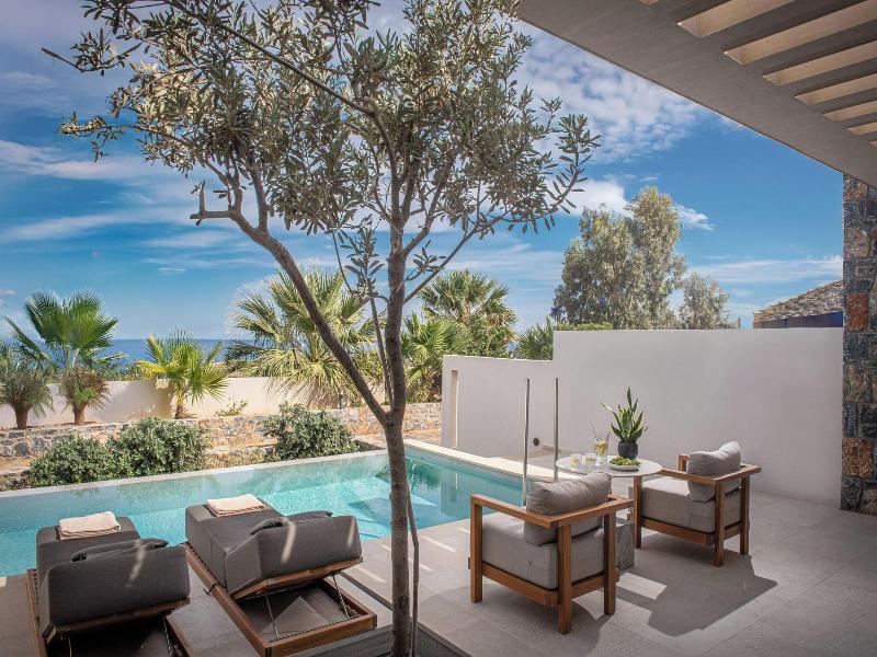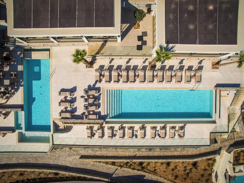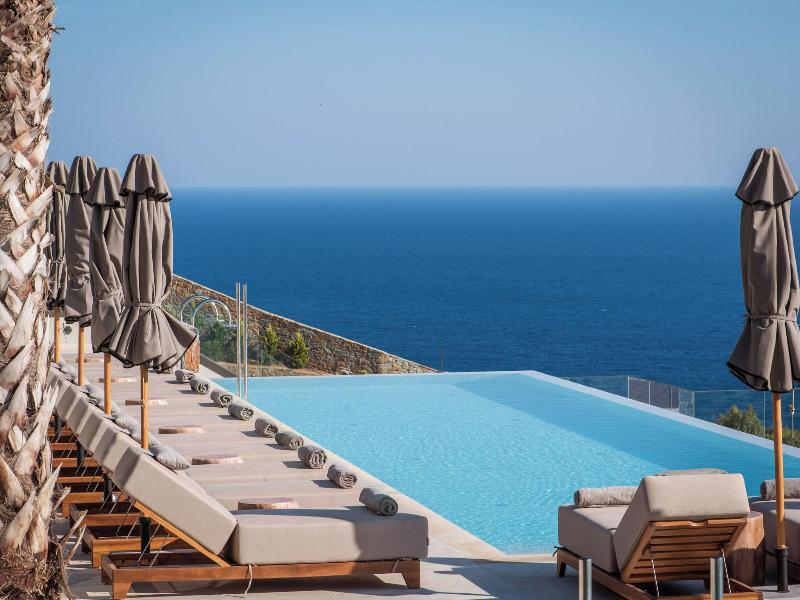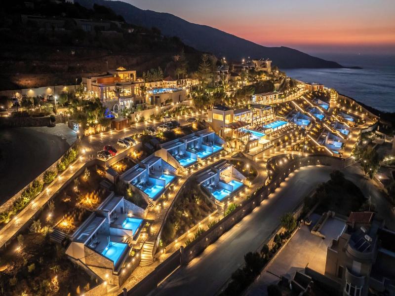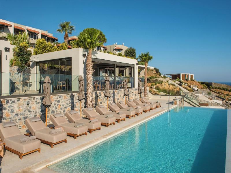 Es un hotel situado en una colina con unas vistas a la bahía preciosas, tranquilo, cerca de Heraklion y a media hora del aeropuerto.