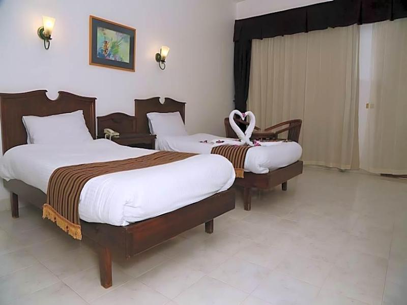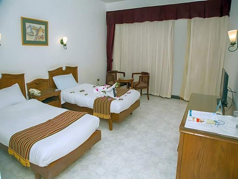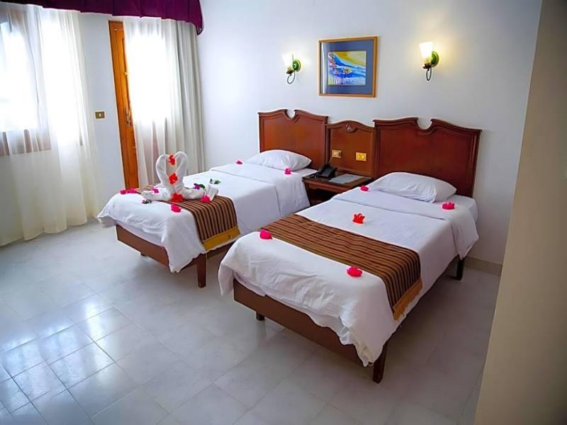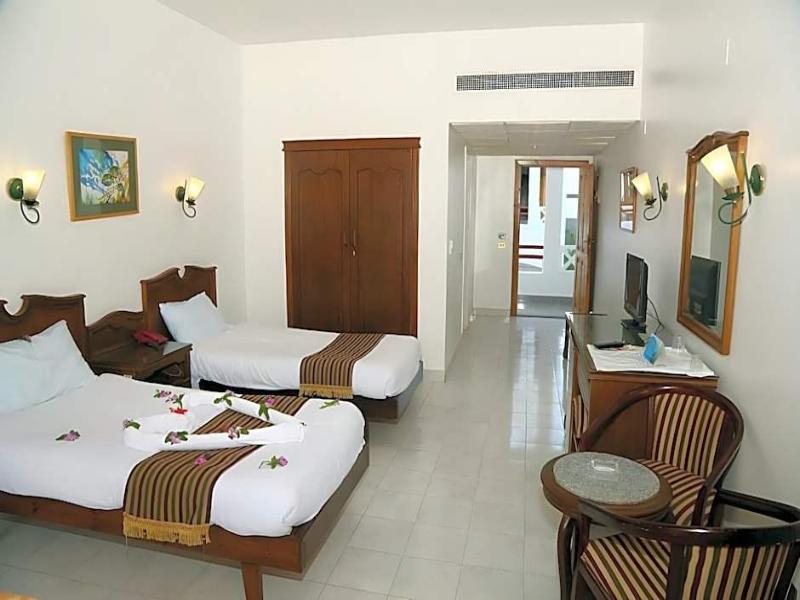 Maravillosamente situado en la costa del Mar Rojo y con vistas a una bahía de aguas cristalinas, este encantador y confortable hotel es una excelente opción de alojamiento para quienes deseen relajarse durante sus vacaciones. Rodeado por las impresionantes montañas del desierto del Sinaí, quienes se alojen en estas magníficas instalaciones podrán practicar buceo o windsurf en las hermosas playas de arena. Las habitaciones superiores están decoradas con buen gusto con muebles preciosos y cuentan con comodidades modernas para garantizar una temperatura perfecta, como aire acondicionado y suelos de baldosas. Quienes se hospeden en este hotel quedarán maravillados con la variada y amplia oferta gastronómica del complejo, que incluye varios restaurantes buffet y acogedores bares donde disfrutar de una bebida refrescante. Las instalaciones de ocio incluyen tres fantásticas piscinas al aire libre con toboganes y un club infantil para los más pequeños.