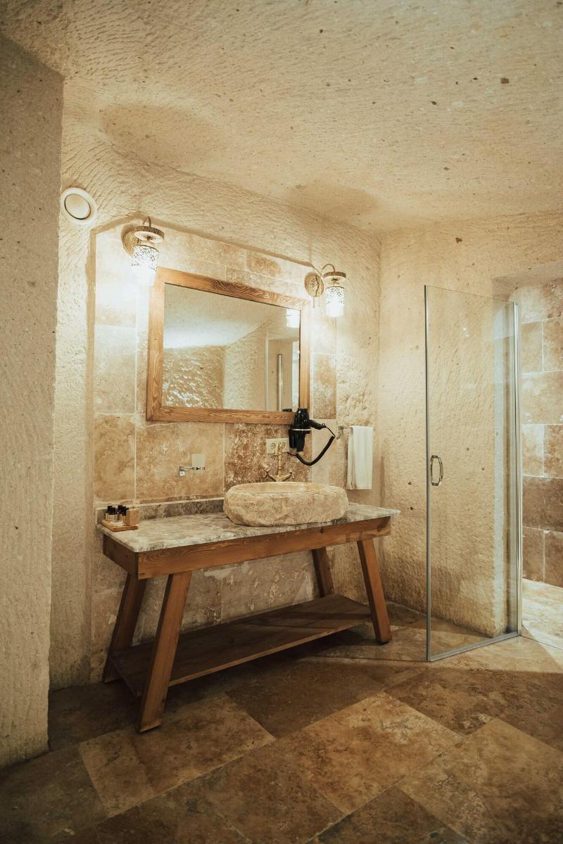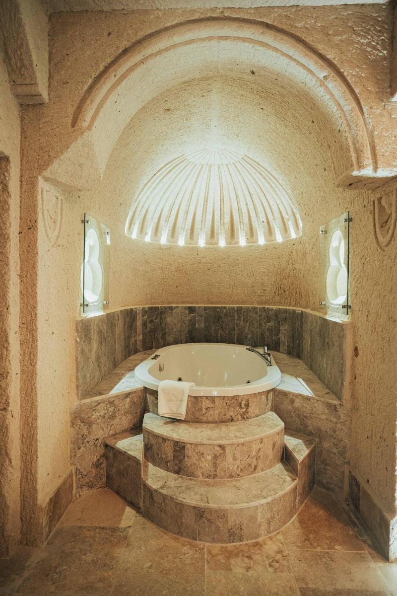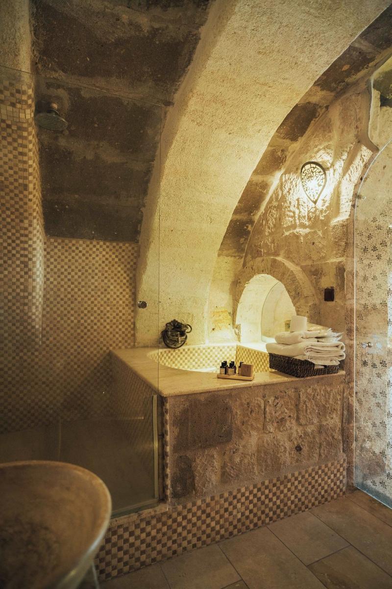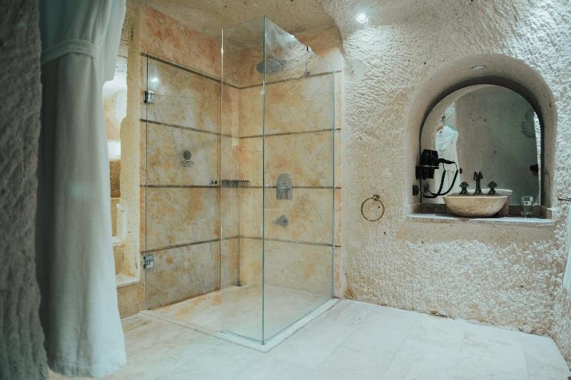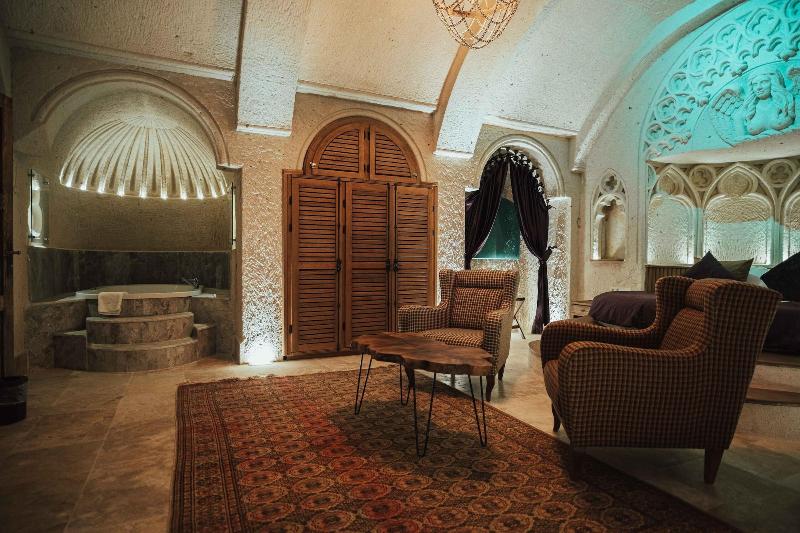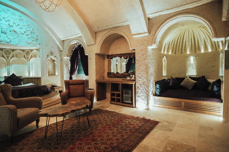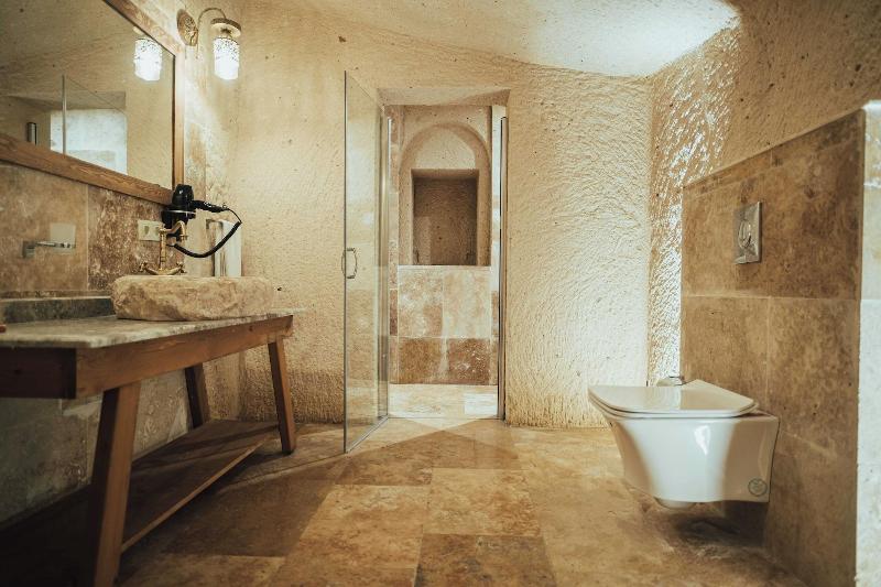 Al alojarte en Harem Cappadocia en Nevsehir, estarás en el distrito histórico, a pocos pasos del Parque Nacional de Göreme y a 8 minutos a pie del Castillo de Uchisar. Este hotel se encuentra a 1, 6 km del Valle de las Palomas y a 3, 2 km del Castillo Romano de Göreme. Disfruta de las vistas desde la terraza en la azotea y el jardín, y aprovecha las comodidades, como el acceso inalámbrico a internet de cortesía. Este hotel también ofrece servicios de conserjería, tiendas de regalos/quiosco y una peluquería. Tendrás a tu disposición una estación de computadoras, check-out exprés y servicio de tintorería/lavandería. Hay un aparcamiento ampliado disponible en las instalaciones. Disfruta de una comida en el restaurante o de un aperitivo en una de las 2 cafeterías. El hotel también ofrece servicio a la habitación (con horario limitado). Conoce a otros huéspedes en la recepción de cortesía, que se celebra a diario. ¿Necesitas relajarte? Tómate un descanso con una bebida refrescante en uno de los 2 bares con salón. Se sirve un desayuno completo gratuito todos los días, de 8:30 a 11:00. Date el gusto de alojarte en una de las 17 habitaciones con decoración individual, que incluyen chimenea y suelo radiante. Dispondrás de conexión inalámbrica a internet gratuita para mantenerte conectado. Los baños con bañera y ducha independientes disponen de bañera profunda y artículos de tocador gratuitos. Las comodidades incluyen teléfono, escritorio y minibar.