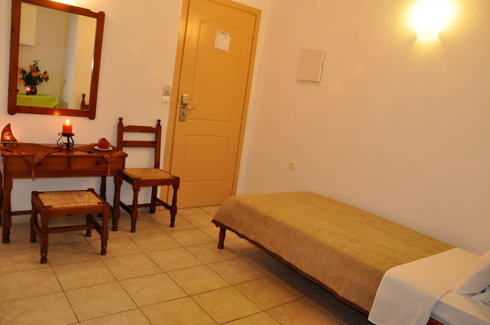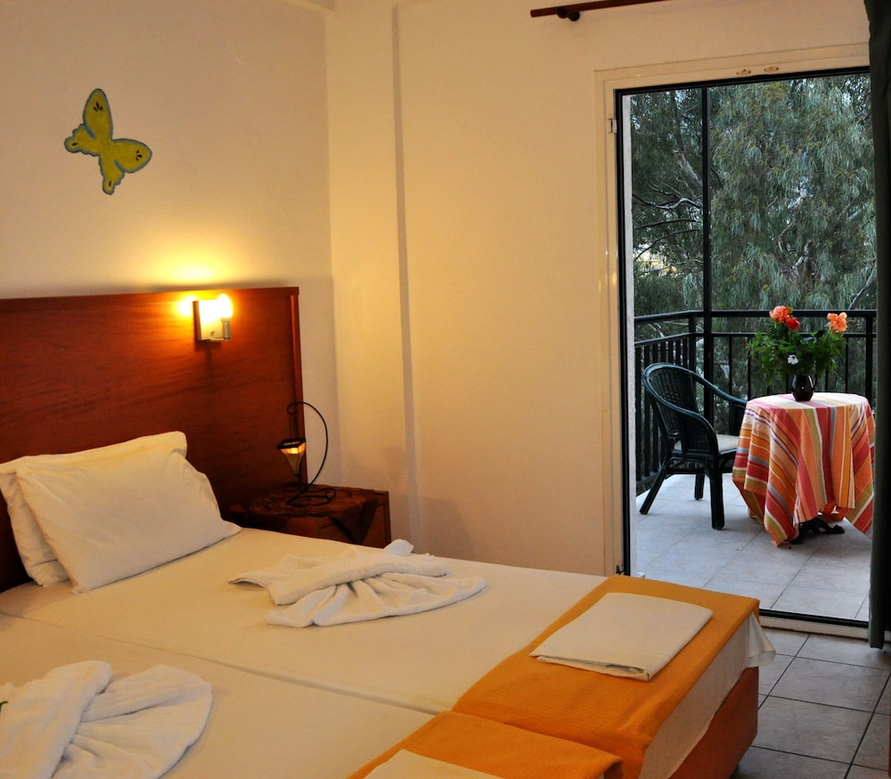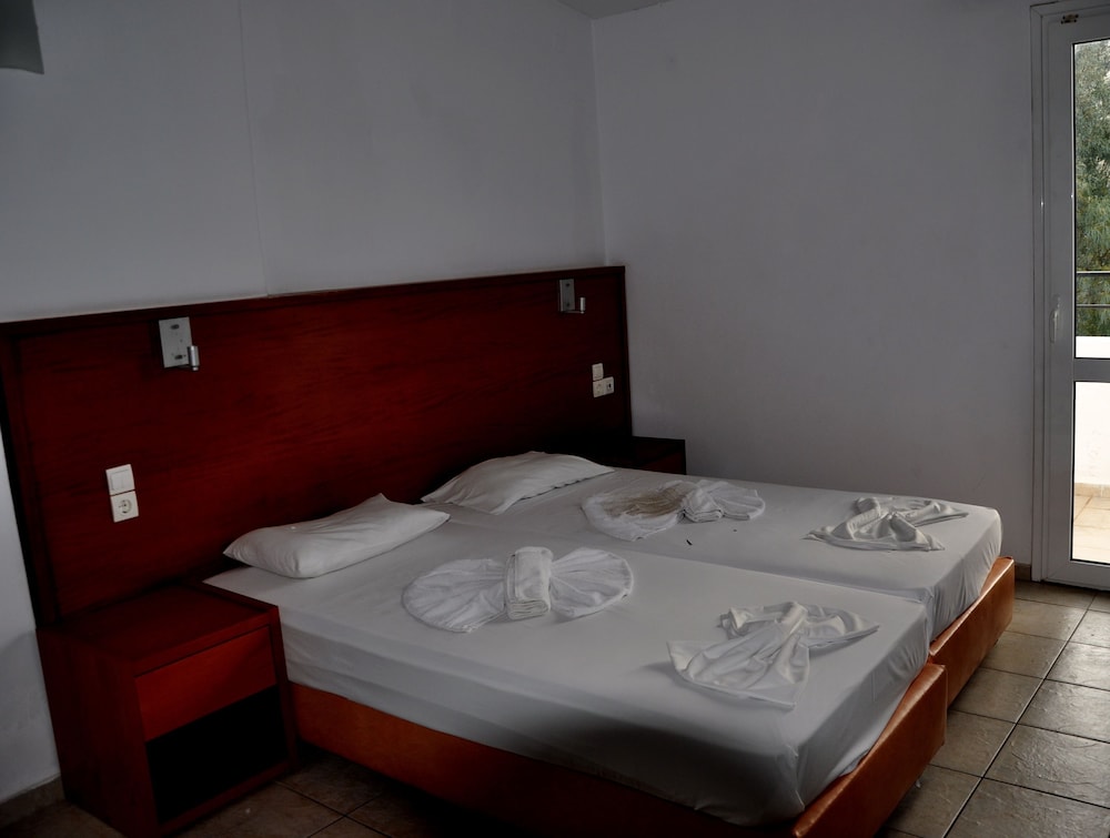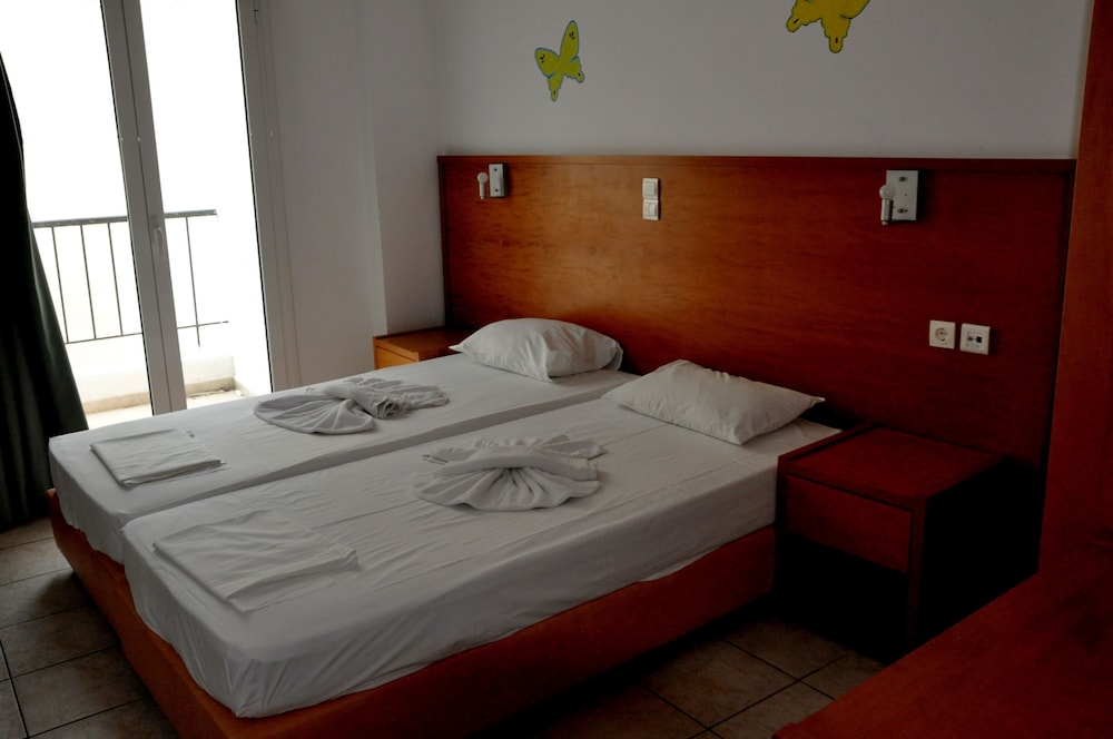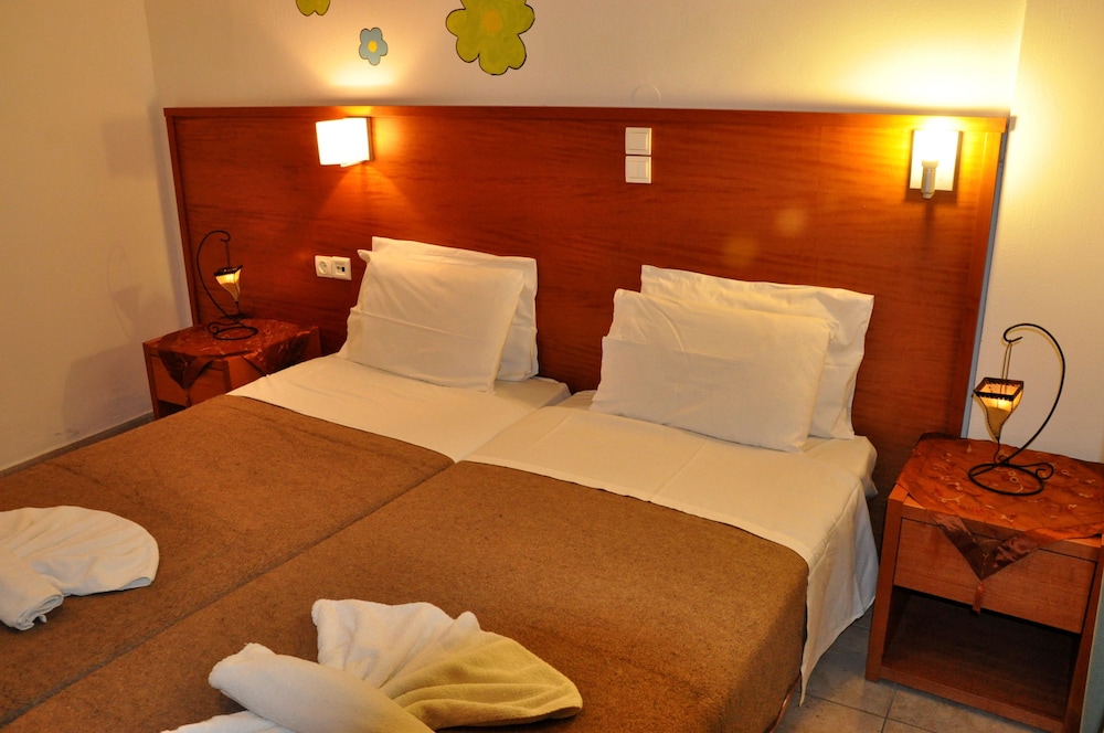 Los apartamentos Haris están situados en la calle principal de la animada ciudad de Hersonissos, a unos 300 m del centro y de la playa Perivolos y a 1 km de la playa de Hersonissos. El complejo también se encuentra justo enfrente de un supermercado y al lado de Hersonisos Medical Center. El aeropuerto de Heraklion está a 24 km de la propiedad.Las instalaciones y servicios incluyen recepción, salón, billar (con cargo adicional), acceso inalámbrico a Internet (con cargo adicional), sala de desayunos, piscina exterior, bar de piscina, terraza solarium ajardinada y zona de juegos infantiles.Todos los apartamentos están equipados con A / C, caja fuerte (ambos con cargo adicional), comedor, cocina con mini nevera, TV, balcón y baño con ducha.**El aire acondicionado funciona desde junio a septiembre con cargo adicional.****El alojamiento para la 3ª y la 4ª persona será en el sofá cama de la sala de estar.**** Tenga en cuenta que algunas de las instalaciones anteriores pueden ser cerradas debido a las condiciones del clima y/o la temporada.El complejo dispone de aparcamiento exterior.**Nota: Recepción con horario limitado. Favor de notificar número de vuelo y hora estimada de aterrizaje al reservar este hotel.**Dirección: Eleftheriou Venizelou Street, 70014 Hersonissos, Creta, Grecia.