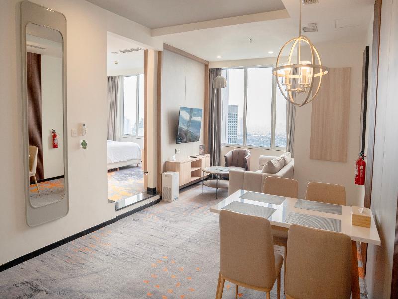Convenientemente ubicado en el distrito financiero central de Yakarta, este moderno hotel ofrece un alojamiento elegante en una ubicación excelente. Estarás junto al centro comercial FX Lifestyle X'enter y a 10 minutos a pie de la Bolsa de Yakarta y Plaza Senayan. El Aeropuerto Internacional Soekarno-Hatta se encuentra a 20 minutos en taxi. Las amplias y bien decoradas habitaciones y suites del hotel están equipadas con todas las comodidades modernas a las que están acostumbrados los viajeros, como televisores de pantalla plana, wifi gratuito y baños impecables. También tendrás acceso a un amplio gimnasio para mantenerte en forma. Si lo que quieres es relajarte, puedes darte un chapuzón en la piscina de la azotea y disfrutar de las fascinantes vistas del horizonte de la ciudad mientras tomas el sol.