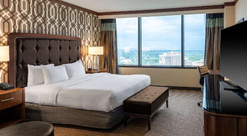 Los siguientes servicios y comodidades están disponibles: cóctel social de cortesía por la tarde, salón ejecutivo, gimnasio, restaurante(s) en el hotel, piscina, servicio a la habitación. Ubicado en el West End de la histórica ciudad de Alexandria, Virginia, el hotel Hilton Alexandria Mark Center ofrece una refrescante combinación de elegancia moderna, servicio atento y una hospitalidad excepcional. Con vistas a los monumentos y atracciones de Washington, D. C. , nuestro elegante hotel lo sitúa cerca de pintorescas galerías y tiendas frente al mar en el casco antiguo de Alexandria, Virginia. Con una ubicación única junto al lago, adyacente a una reserva botánica de 17 hectáreas, el hotel Hilton Alexandria Mark Center ofrece un oasis de tranquilidad para viajeros de negocios y placer en el área de Washington, D. C. Desde el momento en que ingresa al imponente atrio de cristal y al vestíbulo revestido de mármol italiano, disfrutará de la cálida bienvenida de nuestro amable personal y tendrá asegurada una estancia memorable. Nuestras amplias habitaciones y suites de una y dos habitaciones recientemente renovadas en el hotel Hilton Alexandria Mark Center ofrecen una cómoda elegancia con comodidades de lujo, como un espacio de trabajo ergonómico, internet inalámbrico, teléfonos de dos líneas con buzón de voz y artículos de tocador de la colección Hilton Serenity. Los viajeros de negocios y placer pueden ponerse al día con la tecnología más moderna, relajarse nadando en la piscina cubierta/al aire libre (cerrada este año por reformas) o disfrutar de un vigorizante entrenamiento en nuestro dinámico gimnasio con equipos PRECOR. Para una experiencia gastronómica deliciosa, visite nuestro restaurante Finn & Porter, que ofrece una creativa fusión culinaria de carnes, chuletas, platos de mariscos y un espectacular bar de sushi. Disfrute de un cóctel y una conversación agradable en el moderno y animado salón del vestíbulo del atrio.
