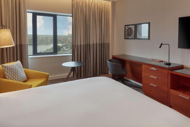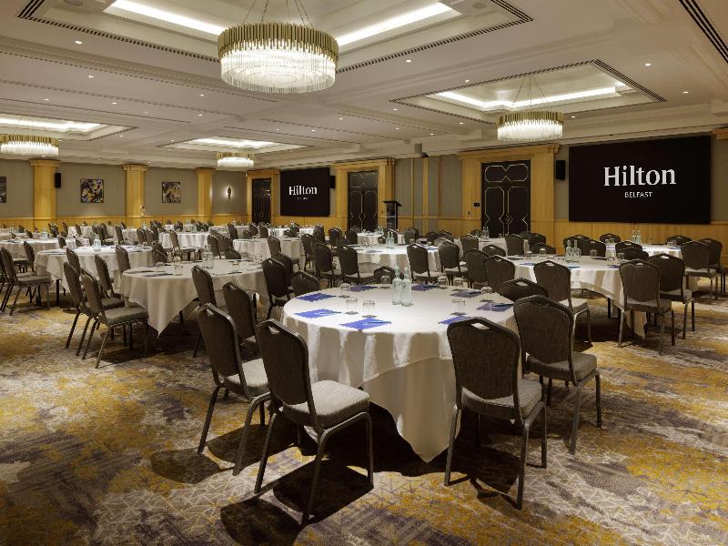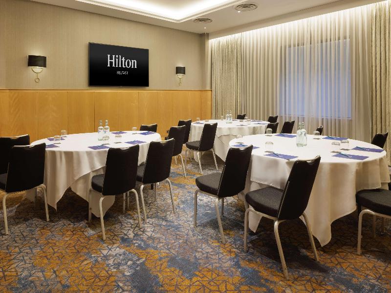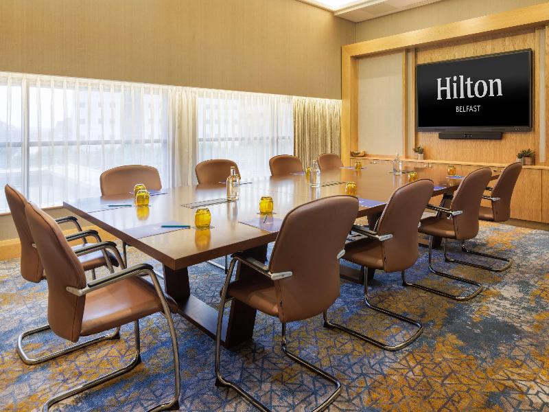 El Hilton Belfast, un impresionante hotel en el centro de la ciudad, se encuentra a orillas del río Lagan, junto al ICC Belfast Waterfront. Sus 202 habitaciones y suites ofrecen comodidades como televisores LED, aire acondicionado, escritorios con puntos de carga USB y servicio de té y café. Los huéspedes pueden disfrutar de una cena en el Riverside Restaurant and Bar con vistas al río o cócteles en el No. 4 Bar. El hotel también cuenta con un gimnasio, amplias instalaciones para reuniones y eventos, y un Executive Lounge. Entre las atracciones cercanas se incluyen la estación Lanyon y Victoria Square.
