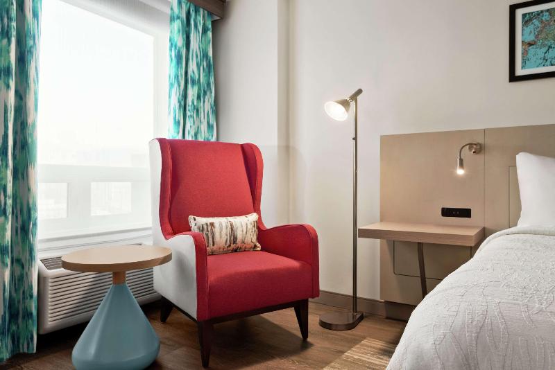 Ubicado en el centro de Saskatoon, el Hilton Garden Inn se encuentra frente al centro comercial Midtown Plaza y el TCU Place, el centro de artes y convenciones de la ciudad. A solo diez minutos en coche del aeropuerto John G. Diefenbaker, el hotel ofrece un cómodo acceso a negocios, restaurantes y tiendas. Las habitaciones disponen de servicios como sábanas blancas y frescas, wifi gratuito, mininevera, microondas, televisor HD, cafetera y plancha con tabla de planchar, además de un amplio escritorio. Si bien el restaurante y la piscina del hotel no están disponibles en este momento, el hotel aún ofrece un gimnasio y desayuno con servicio limitado. Una variedad de salas de reuniones pueden albergar hasta 500 personas, y hay wifi gratuito disponible en todas las áreas públicas. Los huéspedes también pueden utilizar la lavandería que funciona con monedas y el servicio de estacionamiento.