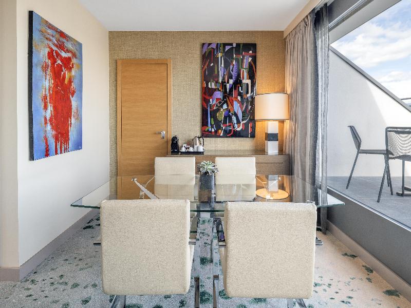 Es enorme, y tiene de todo. Un gimnasio muy bueno, habitaciones buenas, perfecto para conferencias de trabajo. Buen desayuno, comida, cena… Piscina, etc. Pero mi habitación, grande porque tiene sala...