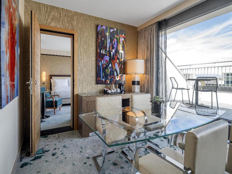 Frente al Aeropuerto de Ginebra y al centro de exposiciones Palexpo, nos encontramos a solo 15 minutos del lago de Ginebra y del centro de la ciudad. Disfruta de nuestra piscina cubierta, jacuzzi, sauna, baño turco, gimnasio, nuestros tres restaurantes y más de 3000 m² de espacio para eventos. Disponemos de un servicio de traslado gratuito al aeropuerto y una tarjeta de transporte.
