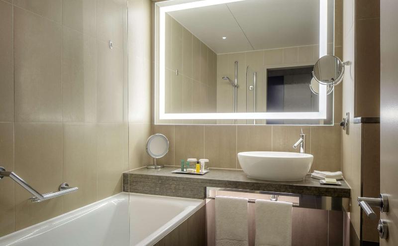 Con el imponente escenario de uno de los monumentos históricos más conocidos de Londres, en el centro del animado distrito de More London, el Hilton London Tower Bridge es un hotel contemporáneo de 4 estrellas con una ubicación ideal tanto para negocios como para turismo, mientras experimentas la auténtica y vibrante vida londinense. A pocos pasos de la estación de tren y metro de London Bridge, el hotel cuenta con habitaciones elegantemente amuebladas con wifi (de pago), TV de 37 pulgadas, enchufes estadounidenses y USB, caja fuerte, set de té y café, artículos de tocador de lujo y mucho más. Ejercítate en el gimnasio completamente equipado y sube de categoría a las plantas ejecutivas para disfrutar de una gama de servicios gratuitos, incluyendo las impresionantes vistas de The Shard desde la terraza City de nuestro Executive Lounge. Con 8 elegantes y versátiles salas de reuniones y 2 espaciosas suites, con capacidad para hasta 450 asistentes, equipadas con tecnología punta, un coordinador dedicado y un centro de negocios abierto 24 horas, te garantizamos el éxito de tus reuniones y eventos en el Hilton London Tower Bridge. Disfruta de cócteles con amigos y compañeros en el animado ambiente del elegante bar de cócteles TwoRuba. La energía de esta dinámica zona y el ambiente de nuestros elegantes bares se extiende por todo el hotel, creando un ambiente relajado e informal.