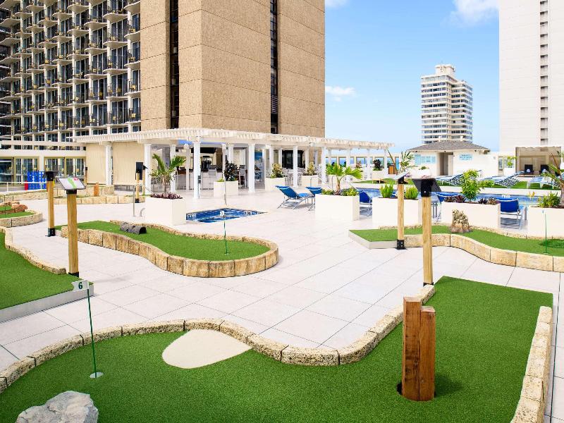 El Hilton Waikīkī Beach Resort & Spa es un hotel de servicio completo con 601 habitaciones que ofrece hermosas vistas al océano y a la montaña. Los huéspedes pueden disfrutar del famoso restaurante MAC 24/7, el Magic Mystery Show y el Asana Spa. La terraza recreativa del décimo piso cuenta con una gran piscina y jacuzzi, un campo de minigolf de 9 hoyos, cabañas junto a la piscina, tumbonas, fogatas y una zona de juegos en el césped con el Hang 10 Bar. El L. B. L. E. Lobby Lounge cuenta con 'The Wall', una pantalla LED de vista directa de 146 pulgadas y 4k, la más grande de las islas hawaianas. Un salón de baile de 743 metros cuadrados tiene capacidad para 600 personas para banquetes, complementado por 836 metros cuadrados de espacio versátil para reuniones. El resort está a solo una cuadra de Waikīkī Beach y de las tiendas, restaurantes y entretenimiento de Kalākaua Avenue.