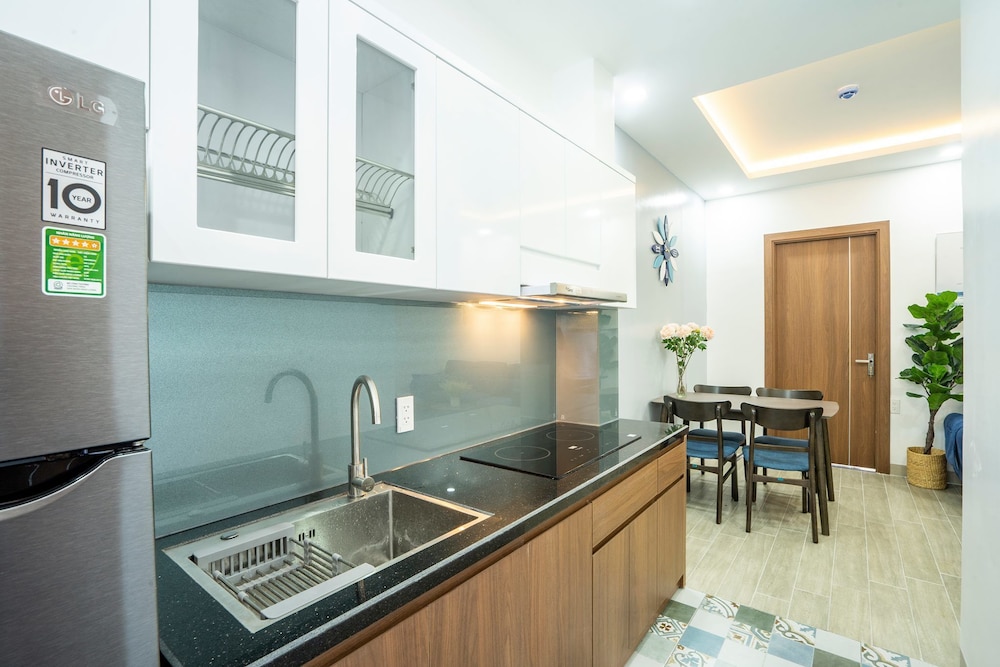 Si decides alojarte en este apartotel de Nha Trang, estarás a menos de 15 minutos en coche de Mercado nocturno de Nha Trang y Terminal de ferry de Vinpearl. Además, este apartotel se encuentra a 19,4 km de Playa Bai Dai y a 2,6 km de Louisiane Brewhouse (cervecería). Regálate una estancia fantástica en este apartamento donde, además de aire acondicionado, tendrás una cocina básica perfectamente equipada con frigorífico y placa de cocina. Entre los servicios de ocio, te alegrará encontrarte un Smart TV que te permitirá acceder a multitud de canales por cable, así como conexión a Internet wifi gratis para mantenerte al día de tus cosas. El baño privado dispone de ducha y bañera combinadas con bañera profunda, además de artículos de higiene personal gratuitos. Tendrás un escritorio y un hervidor eléctrico. El servicio de limpieza se ofrece todos los días. Tendrás tintorería o lavandería, un servicio de recepción las 24 horas y consigna de equipaje a tu disposición. Pagando un pequeño suplemento podrás aprovechar prestaciones como servicio de transporte al aeropuerto (ida y vuelta) (disponible las 24 horas) y aparcamiento limitado.