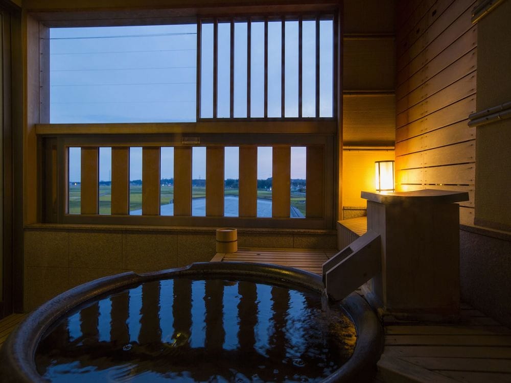 Si eliges Hokuriku Awara Onsen Mimatsu en Awara, estarás a pocos minutos de Daianji Onsen y Maruoka Onsen. Este ryokan se encuentra cerca de Mikuni Onsen y de Museo Conmemorativo a Fujino Genkuro.Habitaciones Te sentirás como en tu propia casa en una de las 69 habitaciones con aire acondicionado, frigorífico y televisor de pantalla plana. Mantén el contacto con los tuyos gracias a la conexión a Internet wifi gratis. El cuarto de baño está provisto de artículos de higiene personal gratuitos y zapatillas. Las comodidades incluyen servicio de descubierta y masajes en la habitación, además de un servicio de limpieza disponible todos los días.Servicios Disfruta de tus momentos de ocio con instalaciones como aguas termales, sauna y karaoke.Para comer En Hokuriku Awara Onsen Mimatsu tendrás a tu disposición un restaurante o la posibilidad de tomar algo rápido en la cafetería. Apaga la sed con tu bebida favorita en el bar o lounge.Servicios de negocios y otros Tendrás servicio de recepción 24 horas y caja fuerte en recepción a tu disposición. Se ofrece servicio de transporte desde la estación de tren gratuito y un aparcamiento sin asistencia gratuito.