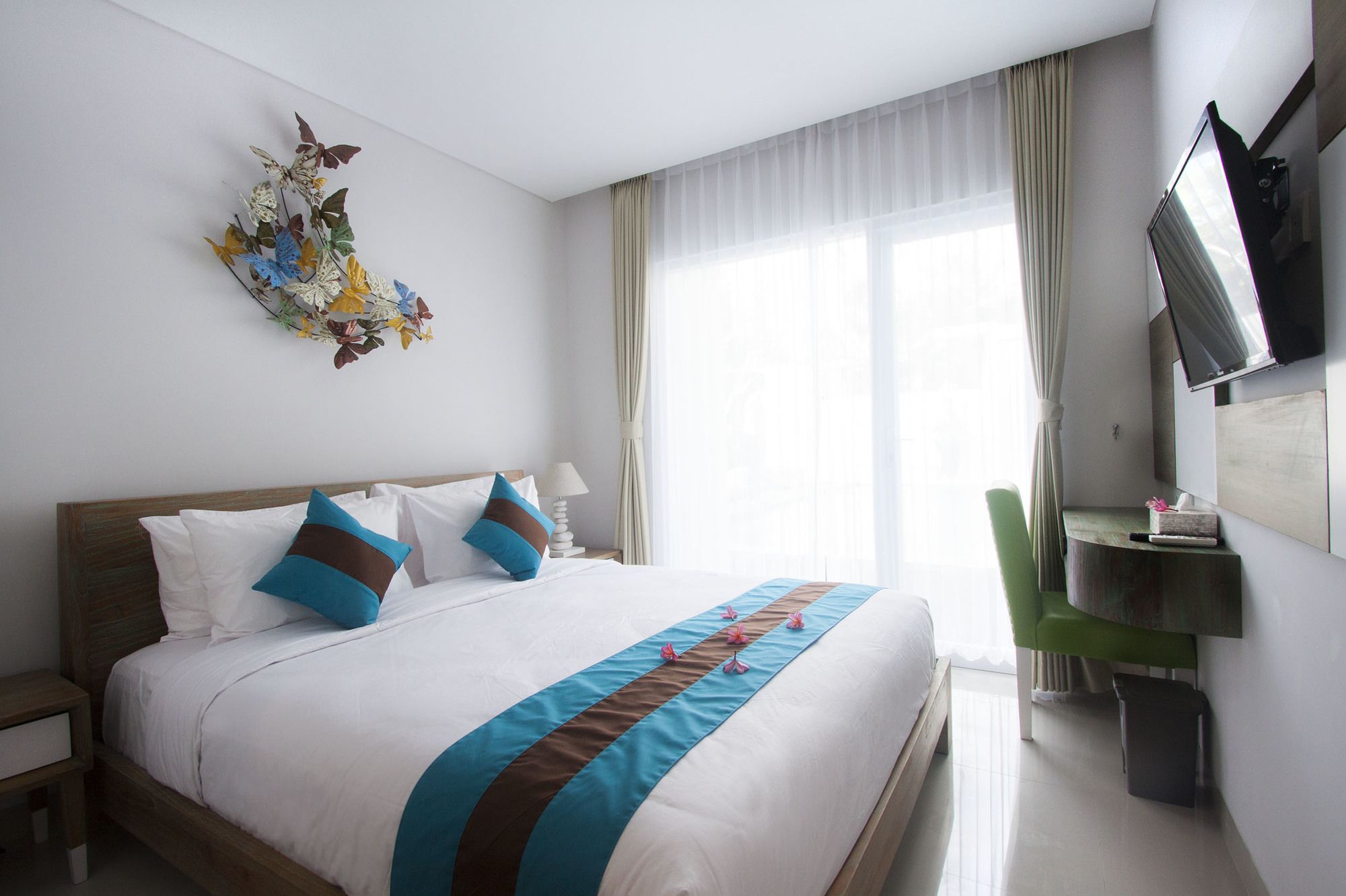 Hola Seminyak, en Seminyak, se sitúa a pocos minutos de Plaza Seminyak y Pura Masceti. Este hotel se encuentra cerca de Playa de Kuta y de Carrefour Plaza de Kuta.Habitaciones Te sentirás como en tu propia casa en una de las 24 habitaciones con aire acondicionado, minibar y televisor LCD. Mantén el contacto con los tuyos gracias a la conexión a Internet wifi gratis. El cuarto de baño está provisto de ducha y artículos de higiene personal gratuitos. Las comodidades incluyen escritorio y cafetera y tetera, además de un servicio de limpieza disponible todos los días.Servicios Elige entre las numerosas instalaciones recreativas ofrecidas, que incluyen piscina al aire libre y bicicletas de alquiler.Para comer Prueba deliciosos platos sin moverte de este hotel, que cuenta con un restaurante y ofrece servicio de habitaciones con horario limitado. Se sirve un desayuno de pago.Servicios de negocios y otros Tendrás depósito de equipaje y caja fuerte en recepción a tu disposición. Pagando un pequeño suplemento podrás aprovechar prestaciones como servicio de transporte al aeropuerto (ida y vuelta) (disponible las 24 horas) y aparcamiento sin asistencia gratuito.