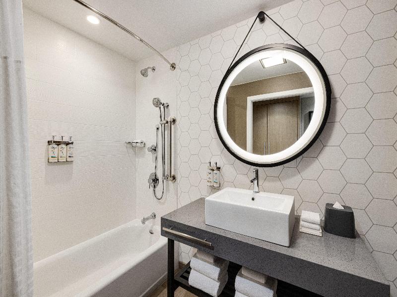 ¡Bienvenido al distrito SoBro en el centro de Nashville! El Holiday Inn & Suites Nashville Downtown - Broadway está ubicado cerca de la vibrante vida nocturna de Broadway y a poca distancia de los mejores destinos como el Ascend Amphitheater, el Bridgestone Arena, el Music City Center, el Nissan Stadium, el Riverfront Park, el Ryman Auditorium y Fifth + Broad. Nuestra ubicación privilegiada es ideal para aficionados a los deportes, visitantes de convenciones, amantes de la gastronomía y de la música. Con estacionamiento cubierto, scooters y abundantes opciones de transporte compartido, explorar Nashville es muy fácil. Pasea por el centro para disfrutar de un viaje culinario, desde la comida casera sureña y los exquisitos asadores hasta el famoso pollo picante de Nashville. Conéctate a nuestro wifi gratuito para tus necesidades personales o de negocios, o visita nuestra bodega o el Almost Friday Sporting Club para disfrutar de una bebida o comida refrescante. Manténte activo en nuestro moderno gimnasio, equipado con una bicicleta Peloton. Cada una de nuestras 230 habitaciones bellamente decoradas cuenta con un televisor de 49 pulgadas, puertos USB y múltiples enchufes, microondas, refrigerador, cafetera Keurig y caja fuerte. Nuestros expertos en planificación de eventos pueden ayudarte a utilizar nuestros 817 metros cuadrados de espacio multiusos para reservar eventos especiales, reuniones, banquetes, cenas y más.