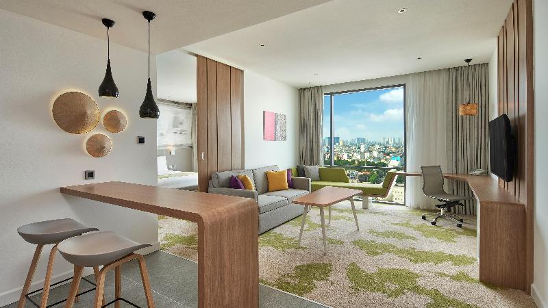 Descubre el lado más brillante de los viajes en Holiday Inn & Suites Saigon Airport, el primer Holiday Inn de Vietnam. A solo 10 minutos del Aeropuerto Internacional Tan Son Nhat y a 20 minutos del centro, nuestro hotel te ofrece un refugio cómodo y práctico. Explora la gastronomía de primera clase y la arquitectura colonial francesa de Ciudad Ho Chi Minh. Saborea deliciosos platos en el restaurante Manja Manja y en nuestro Lobby Lounge. Celebra reuniones y eventos en nuestros sofisticados espacios, incluido nuestro elegante Song Saigon Ballroom. Mantén tu rutina de ejercicios en nuestro gimnasio abierto las 24 horas, date un chapuzón en nuestra piscina olímpica al aire libre y permanece conectado con wifi gratuito. Disfruta de vistas panorámicas desde tu habitación mientras te sumerges en una lujosa cama para un descanso reparador.