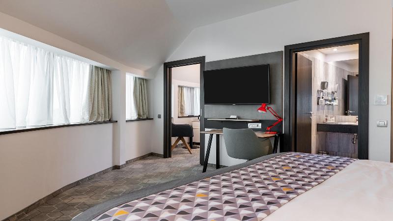 El Holiday Inn Bucharest – Times está ubicado en Bulevardul Decebal 19, una animada avenida en Bucarest, la capital de Rumanía. Nuestro hotel se encuentra a pocos pasos de las principales atracciones turísticas y ofrece fácil acceso al resto de la ciudad. La Plaza Unirii, el casco antiguo, la Plaza Universitatii y el estadio de fútbol National Arena están a poca distancia a pie o en coche. El Palacio del Parlamento está a tan solo 10 minutos en coche. El Aeropuerto Internacional Henri Coandă (OTP) se encuentra a 20 minutos en coche del hotel. El Holiday Inn Bucharest – Times cuenta con 102 cómodas habitaciones con excelentes servicios para garantizarte una noche de descanso reparador. Nuestros tres modernos espacios para reuniones y eventos tienen capacidad para hasta 80 personas. El hotel también cuenta con un Health & Spa Club en la última planta con vistas panorámicas de la ciudad, y hay wifi disponible en todo el establecimiento. Ya sea que viajes por negocios o por placer, nuestro hotel es el lugar perfecto para reunirte, trabajar, relajarte y divertirte. Disfruta de un servicio amable y deliciosas comidas en nuestro restaurante y bar, donde los niños comen gratis. Toma un café recién hecho en nuestro «To Go Café» y crea recuerdos inolvidables de tu estancia en Bucarest.