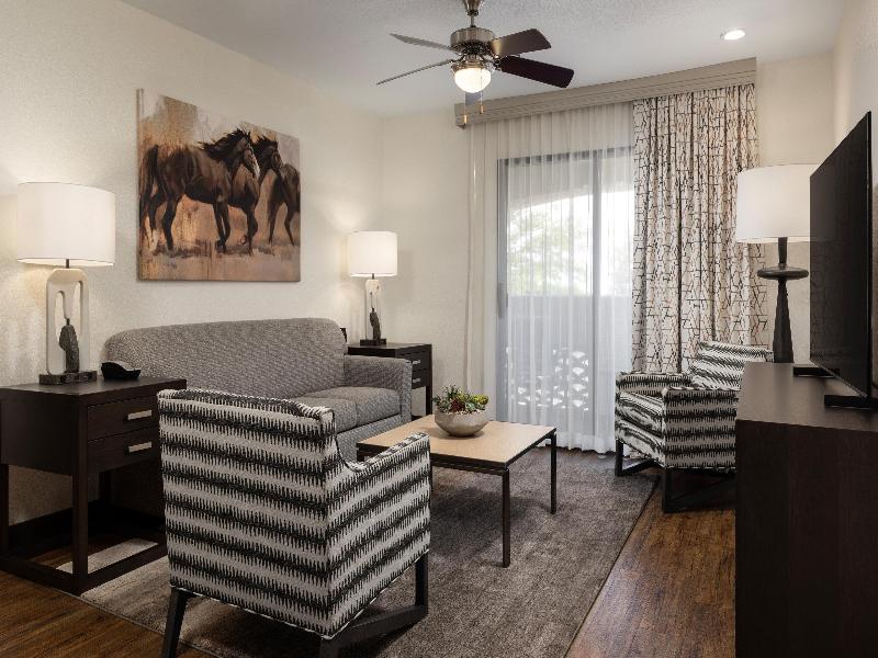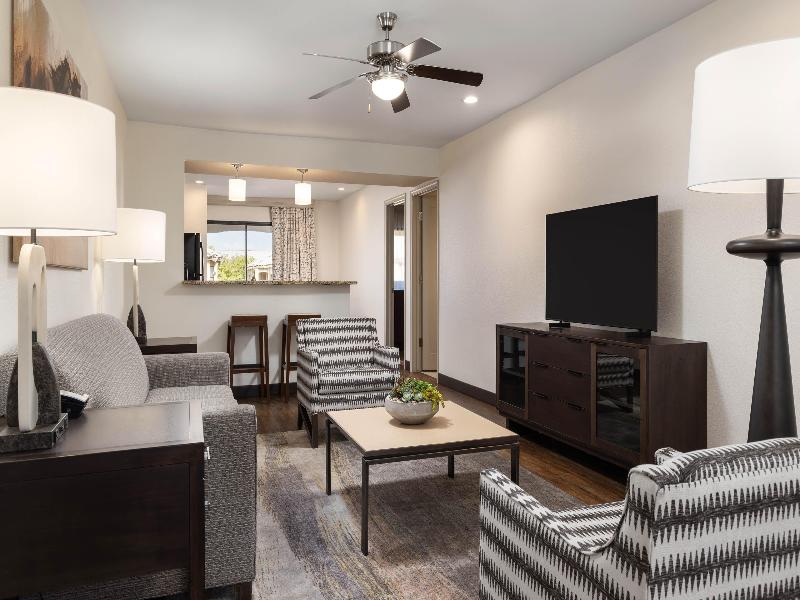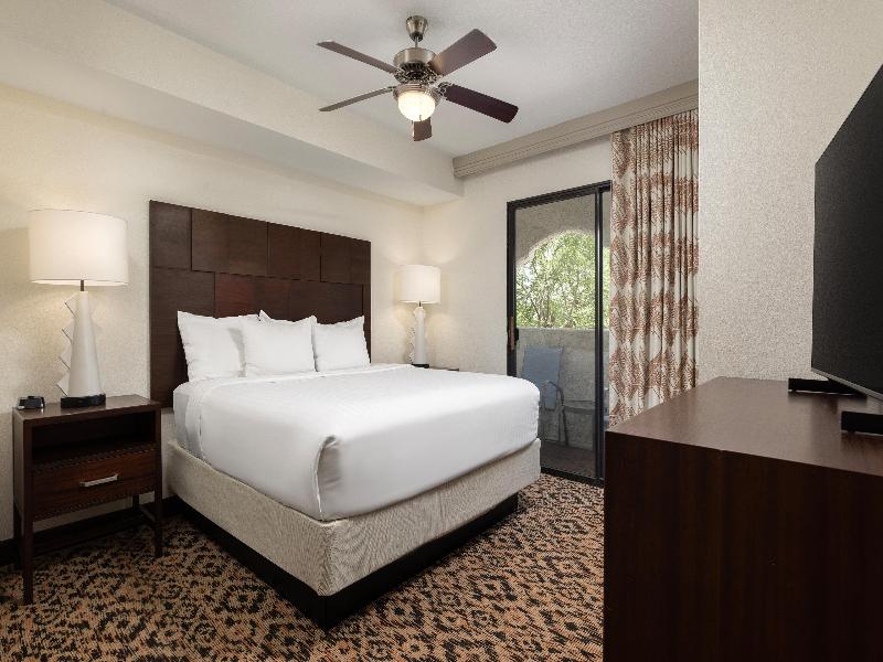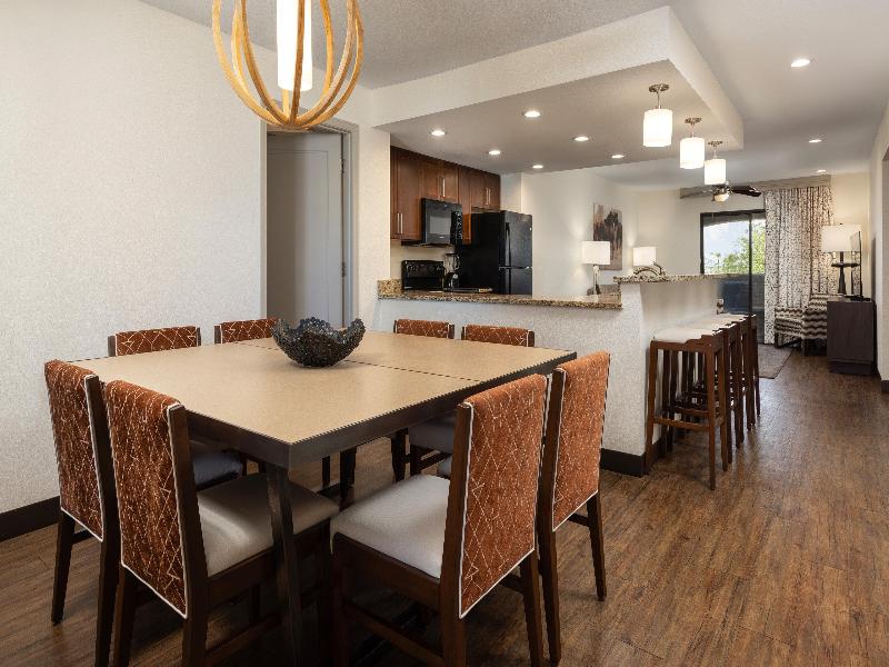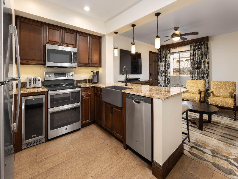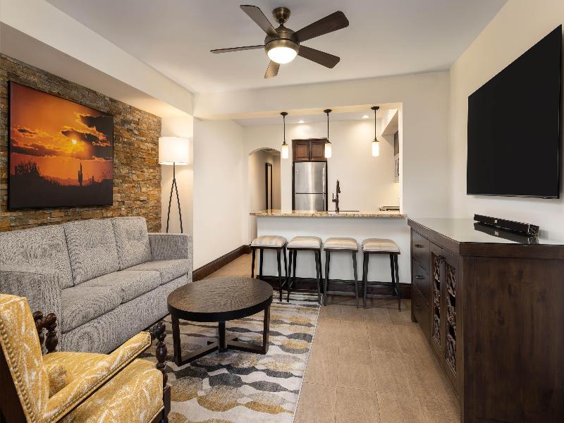 Con pintorescos cactus, plantas rodadoras y crestas de arcilla roja, el desierto de Sonora está lleno de senderos perfectos para practicar senderismo y ciclismo. Pero si lo tuyo son las tiendas y bodegas con encanto, puedes cambiar las botas de montaña por botas vaqueras y dirigirte al centro de Scottsdale, Arizona. Sea lo que sea que decidas hacer aquí, nuestro cercano Scottsdale Resort es el lugar perfecto para refrescarte del calor. Busca un buen lugar con vistas mientras los niños se divierten en nuestra atracción acuática Splash Canyon. Relájate con una bebida fría junto a una de nuestras cuatro piscinas climatizadas. Y saborea una comida del suroeste en nuestro ArteZania Kitchen & Cantina. Es el lugar perfecto para relajarse después de un día de diversión familiar. ¿Quieres mejorar tu juego de golf? ¡Estás de suerte! El golf es una de las mejores actividades en Scottsdale, y nuestro resort está cerca de algunos campos de golf fantásticos. Si prefieres ir de compras, el ecléctico casco antiguo de Scottsdale cuenta con encantadoras boutiques y excelentes restaurantes. También puedes disfrutar de más de 293 kilómetros de exuberantes bosques de cactus e impresionantes paisajes montañosos en McDowell Sonoran Preserve, justo al oeste del resort. Scottsdale Resort dispone de amplias villas de estilo condominio de uno a tres dormitorios, de 51 a 123 metros cuadrados. Cada una cuenta con una sala de estar, lavadora y secadora, y una cocina totalmente equipada. Para una experiencia superior, puedes optar por una villa Signature Collection con hasta cuatro dormitorios y servicios premium. Ten en cuenta que hay una tarifa de resort que incluye una variedad de servicios en las instalaciones.