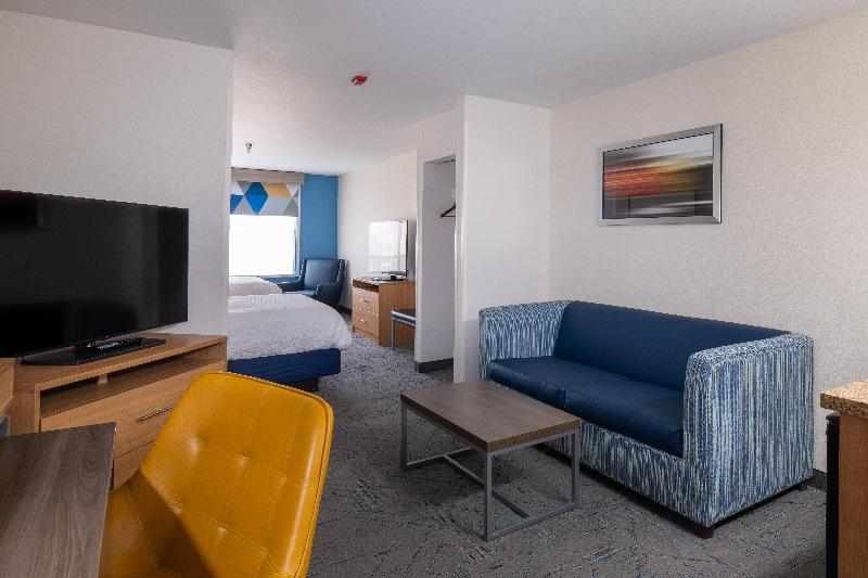 Disfruta de una estancia moderna en el Holiday Inn Express Hotel & Suites en Henderson, Nevada, a solo minutos de la emoción de la Las Vegas Strip y el Aeropuerto Internacional McCarran. Explora atracciones cercanas como la Hoover Dam, Galleria Mall y Sunset Station Casino, o aventúrate un poco más lejos a Sam Boyd Stadium, Lake Mead y el District at Green Valley Ranch. Nuestra conveniente ubicación junto a la I-515 te brinda fácil acceso a importantes eventos como NASCAR, SEMA y CES, así como a UNLV, 360 Communications y el St. Rose de Lima Hospital. Relájate en una de nuestras 101 habitaciones bien equipadas con wifi gratis y disfruta de servicios gratuitos como estacionamiento, desayuno caliente Express Start y un centro de negocios completamente equipado con servicios de copia, impresión y fax, además de sala de reuniones. También ofrecemos un gimnasio y aceptamos mascotas. Únete a nuestro evento de agradecimiento a los huéspedes en el vestíbulo de lunes a miércoles de 17:00 a 19:00.