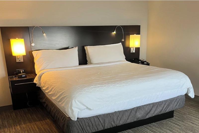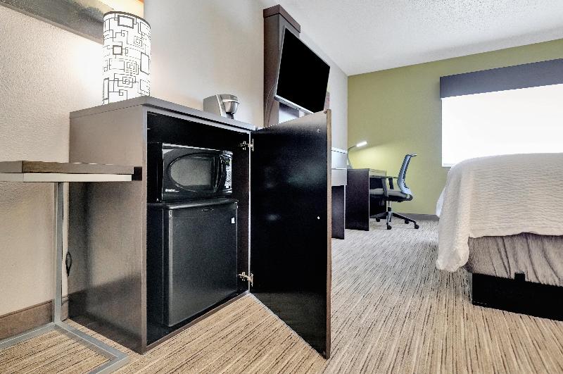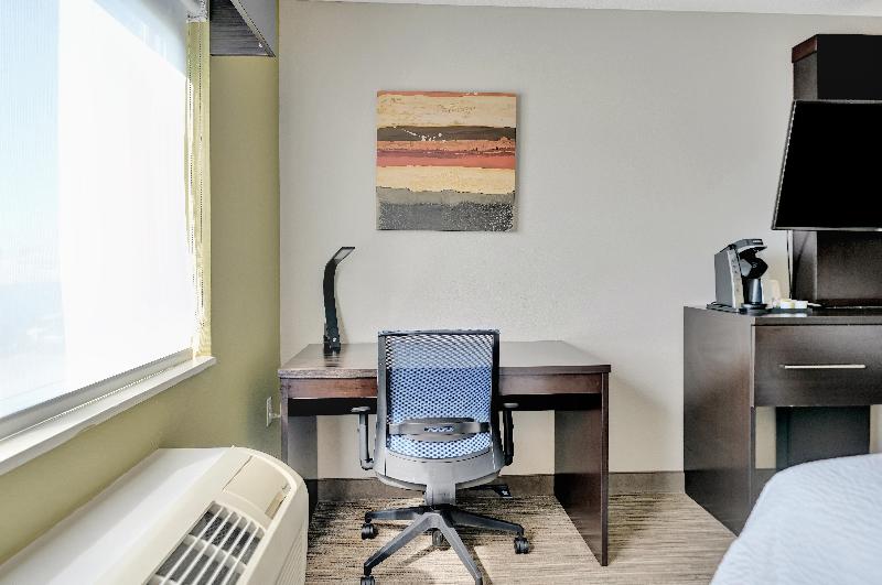 La habitación era moderna, limpia y cómoda. Tenía todas las comodidades que son habituales para un HI Express en estos días. Ya que era verano y el aire acondicionado estaba funcionando la mayor...