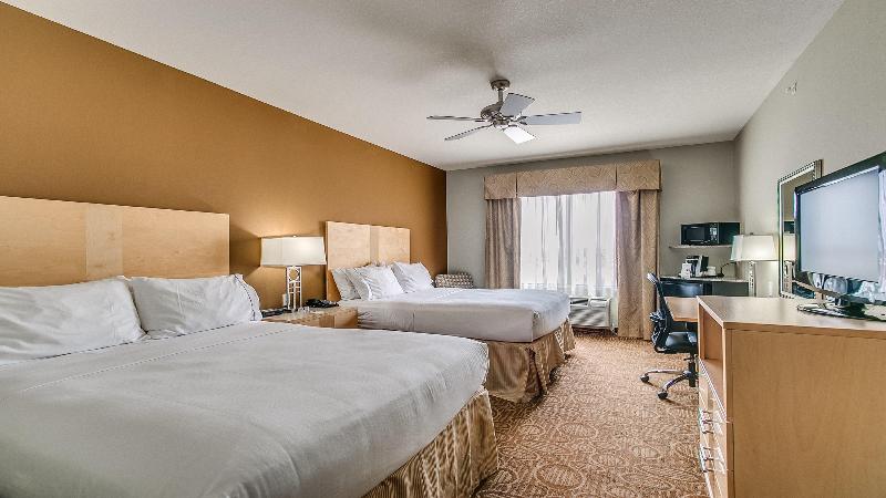 A los viajeros a Lubbock les encanta la ubicación de este hotel Es fácil ver por qué quienes visitan Lubbock, Texas, eligen nuestro hotel. El Holiday Inn Express® Hotel Wolfforth está a 16 kilómetros del corazón del Panhandle, ubicado en el suroeste de Lubbock, justo en la salida de la autopista 82/62, y a menos de 20 minutos del centro de la ciudad, donde encontrarás aire fresco, puestas de sol impresionantes y la gente más amable de la zona. Los viajeros de negocios a Wolfforth o Lubbock encuentran útiles el acceso gratuito a Internet de alta velocidad y el Business Center del hotel. Con AT&T, United Supermarkets, Convergys Corporation y Suddenlink Communications a menos de 8 kilómetros, puedes llegar fácilmente a tus reuniones a tiempo. Covenant Health y UMC Health Center están a menos de 20 minutos de nuestro hotel. Visitar la zona de Lubbock te lleva de vuelta a los buenos tiempos en el Buddy Holly Center, te coloca en la cabina de mando del Silent Wings Museum, te hace mover los pies al ritmo de la música en el Depot Entertainment District y te pone de pie para animar en el Jones AT&T Stadium de Texas Tech. Viaja al auténtico oeste en el Ranching Heritage Center o visita una de las pocas colonias de perritos de la pradera que quedan en Prairie Dog Town, en MacKenzie Park. Experimenta el mejor servicio en tu viaje a la zona de Wolfforth/Lubbock, Texas, con el desayuno caliente de cortesía del hotel. Después de nadar en la piscina cubierta o de hacer ejercicio en el Fitness Center, puedes pasar por la tienda para comprar refrigerios o el cepillo de dientes que olvidaste.