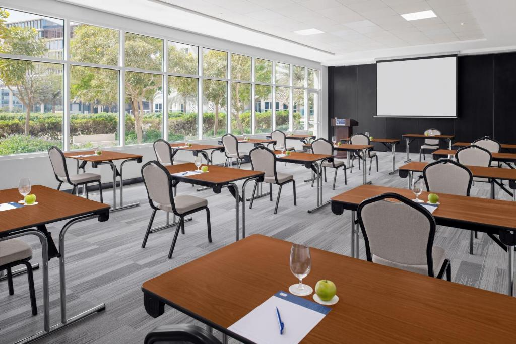 Ubicación - Este hotel está situado en el corazón de un distrito de negocios principal de Dubái, que incluye la zona educativa y campus Kowledge Village, el parque tecnológico Dubai Internet City y Dubai Media City. El hotel es práctico tanto para viajes de negocios como de placer. Ofrece fácil acceso a la carretera Dubái-Abu Dhabi. También está cerca del mayor centro comercial de Dubái, el Mall of the Emirates, así como del distrito en rápido crecimiento Dubai Marina y la isla Palm Jumeirah. El aeropuerto internacional de Dubái dista aproximadamente 25 km.. Instalaciones - Los huéspedes se alojan en 244 habitaciones. Hay un vestíbulo y servicios de recepción a disposición de los viajeros. Es posible acceder a las plantas cómodamente en ascensor o bien por las escaleras. Servicios como un guardarropa, una caja fuerte y una oficina de cambio ayudan a proporcionar una estancia confortable. Los huéspedes pueden conectarse a Internet en las zonas públicas mediante Wi-Fi. En cuanto a opciones gastronómicas, el hotel cuenta con un restaurante y un bar. Aquellos que viajen con vehículo propio pueden dejarlo en el aparcamiento del establecimiento. También hay asistencia médica, servicios de traducción, servicio de habitaciones, un servicio despertador y una lavandería.. Habitaciones - En las habitaciones hay aire acondicionado y un cuarto de baño. Además, hay una caja fuerte. Asimismo, hay disponibles una nevera, una mini nevera y una cafetera/tetera. Hay un set de plancha para mayor comodidad de los huéspedes. El equipamiento se completa con conexión a Internet, un teléfono, un televisor, una radio y Wi-Fi. Una ducha y una bañera se incluyen en el equipamiento de los cuartos de baño. Las comodidades incluyen un secador de pelo. El alojamiento ofrece habitaciones de no fumadores y habitaciones para fumadores.. Deporte y ocio - La oferta deportiva y de ocio se encarga de porporcionar una estancia agradable y divertida. Las actividades de ocio ofrecidas proporcionan variedad; estas incluyen golf y un gimnasio. Comidas - El hotel ofrece, como servicio gastronómico, la posibilidad de reservar alojamiento con desayuno y media pensión. Los huéspedes pueden escoger entre desayuno, almuerzo y cena.. Tarjetas de crédito - Como forma de pago se aceptan las tarjetas de crédito habituales como, por ejemplo, American Express, Visa y MasterCard..