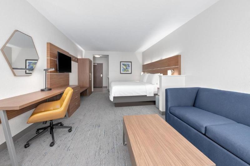 ¡Bienvenido al Holiday Inn Express & Suites en Moore! El hotel más nuevo de Moore ofrece una experiencia verdaderamente excepcional, desde nuestra galardonada hospitalidad hasta nuestros altísimos estándares de limpieza. Nos esforzamos al máximo para garantizar un ambiente cómodo y acogedor que supere tus expectativas. Con una ubicación segura y conveniente cerca de la I-35, entre OKC y Norman, nuestro hotel sirve como el centro perfecto para todas las atracciones del centro de Oklahoma. Ya sea una noche en Bricktown en Oklahoma City, un evento de la University of Oklahoma en Norman o un día de relax en uno de los muchos parques de Moore, nuestro hotel, bellamente diseñado, ofrece una base lujosa y cómoda para tus aventuras en la zona. Con un centro comercial cercano y el Warren Theatre de estilo retro, encontrarás una gran cantidad de opciones de entretenimiento, compras y restaurantes a tiro de piedra. También puedes abastecerte de artículos esenciales y golosinas en nuestro mercado abierto las 24 horas. Comienza bien el día con nuestro desayuno caliente tipo buffet Express Start, manténte activo en nuestro moderno gimnasio y relájate en nuestra piscina de agua salada al aire libre. Cuando llegue el momento de descansar, conéctate a nuestro internet de alta velocidad gratuito o mira una variedad de canales de cable. Para nuestros viajeros de negocios, ofrecemos espacios de reuniones flexibles y un centro de negocios para satisfacer tus necesidades profesionales. Experimenta la diferencia en el Holiday Inn Express & Suites y descubre por qué somos la opción preferida en el área metropolitana de Moore.