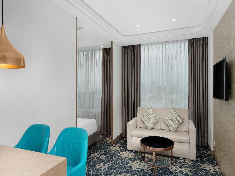 El moderno Holiday Inn Gurugram Sector 90 se encuentra en New Gurugram, con fácil acceso a Yashobhoomi, las principales autopistas y el Aeropuerto IGI. El hotel ofrece 263 elegantes habitaciones y suites con vistas al paisaje urbano y a las colinas Aravalli. Los huéspedes pueden disfrutar del restaurante y bar Viva All Day Dining en la azotea, que ofrece cocina india, asiática y occidental. Un espacio para banquetes de 1115 m² está disponible para eventos, y los huéspedes pueden relajarse en la piscina y el gimnasio de la azotea.