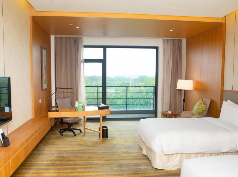 This hotel is located in lovely park with lake a little bit far from the city. Car drive from Shanghai international airport takes about 2 hours. No restaurants or shopping available in walking...