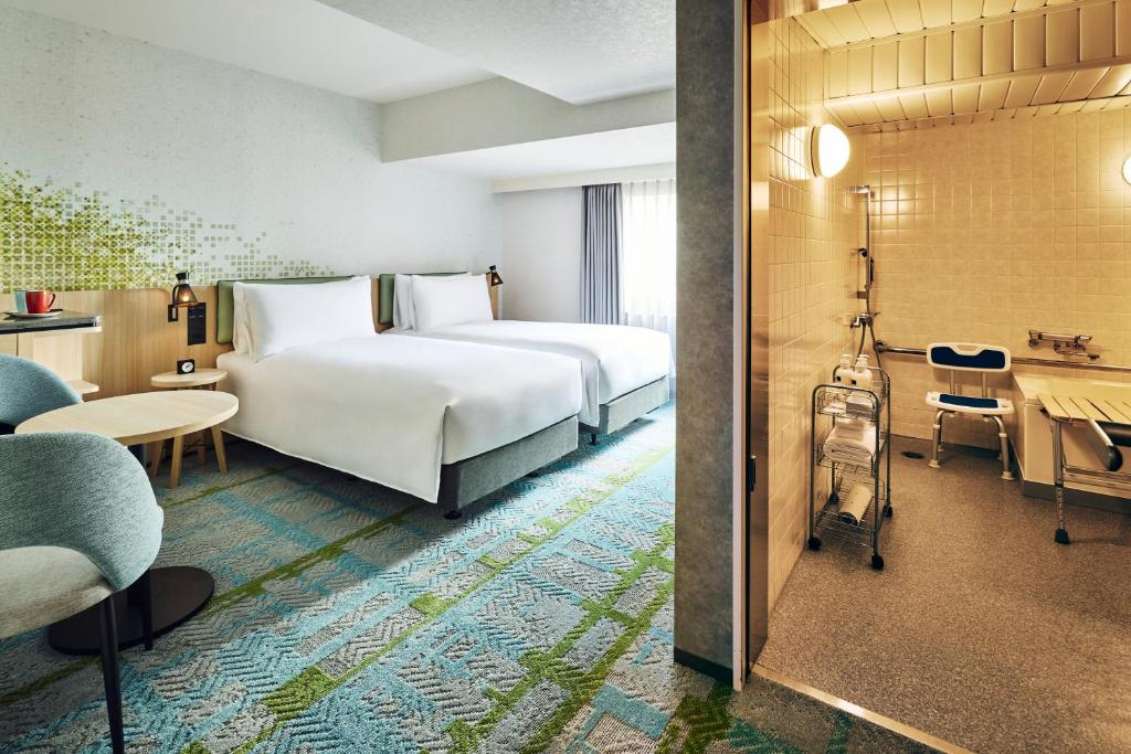 El Oriental Hotel Kyoto Rokujo es un elegante hotel urbano situado en Kyoto, que combina diseño moderno con la calidez de la hospitalidad japonesa. Sus habitaciones espaciosas y bien equipadas ofrecen un ambiente relajante, ideal para descansar tras explorar la ciudad. El hotel cuenta con servicios como desayuno incluido, Wi-Fi gratuito, gimnasio y un restaurante que sirve tanto cocina local como internacional. Su ubicación estratégica permite un fácil acceso a los principales templos y atracciones culturales, siendo perfecto tanto para viajes de negocios como de ocio.