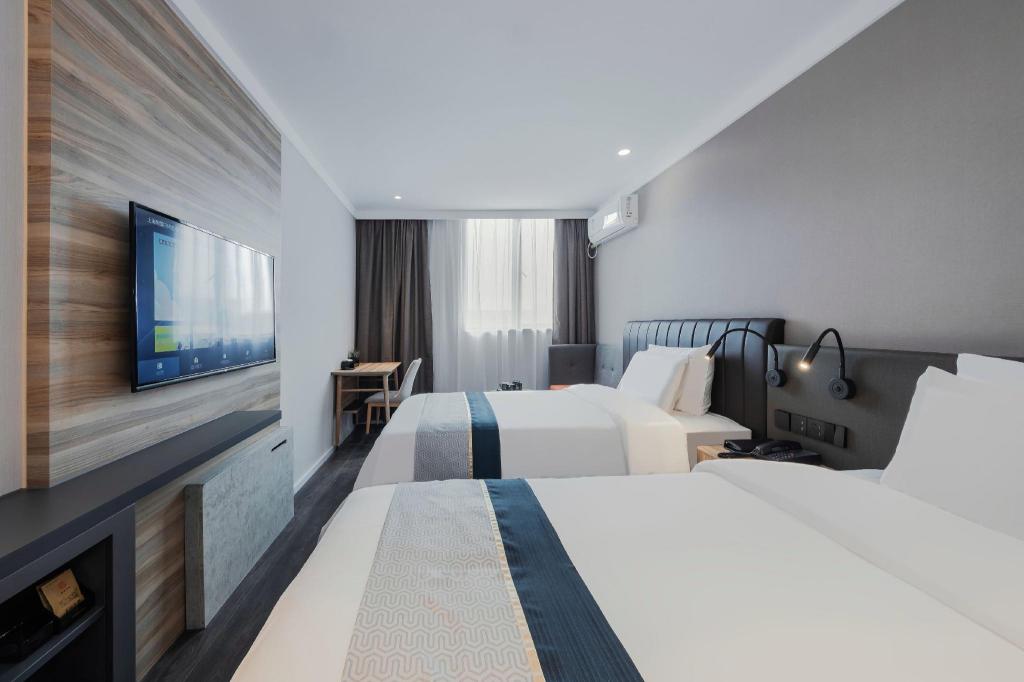 Facilities and services include 24hr reception, car parking, elevator, free wi-fi, non-smoking property and restaurant.Room comes with air conditioning, desk, non-smoking rooms, private bathroom and wi-fi free.Address: 1090 Guanglan Road (Guanglan Lu), 201210, Shanghai, China.