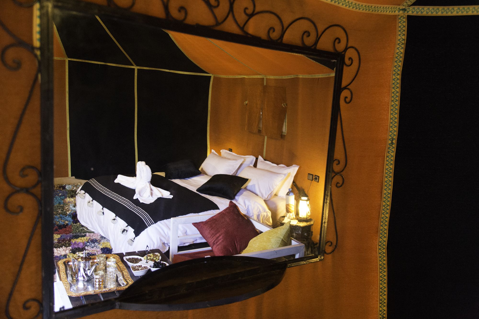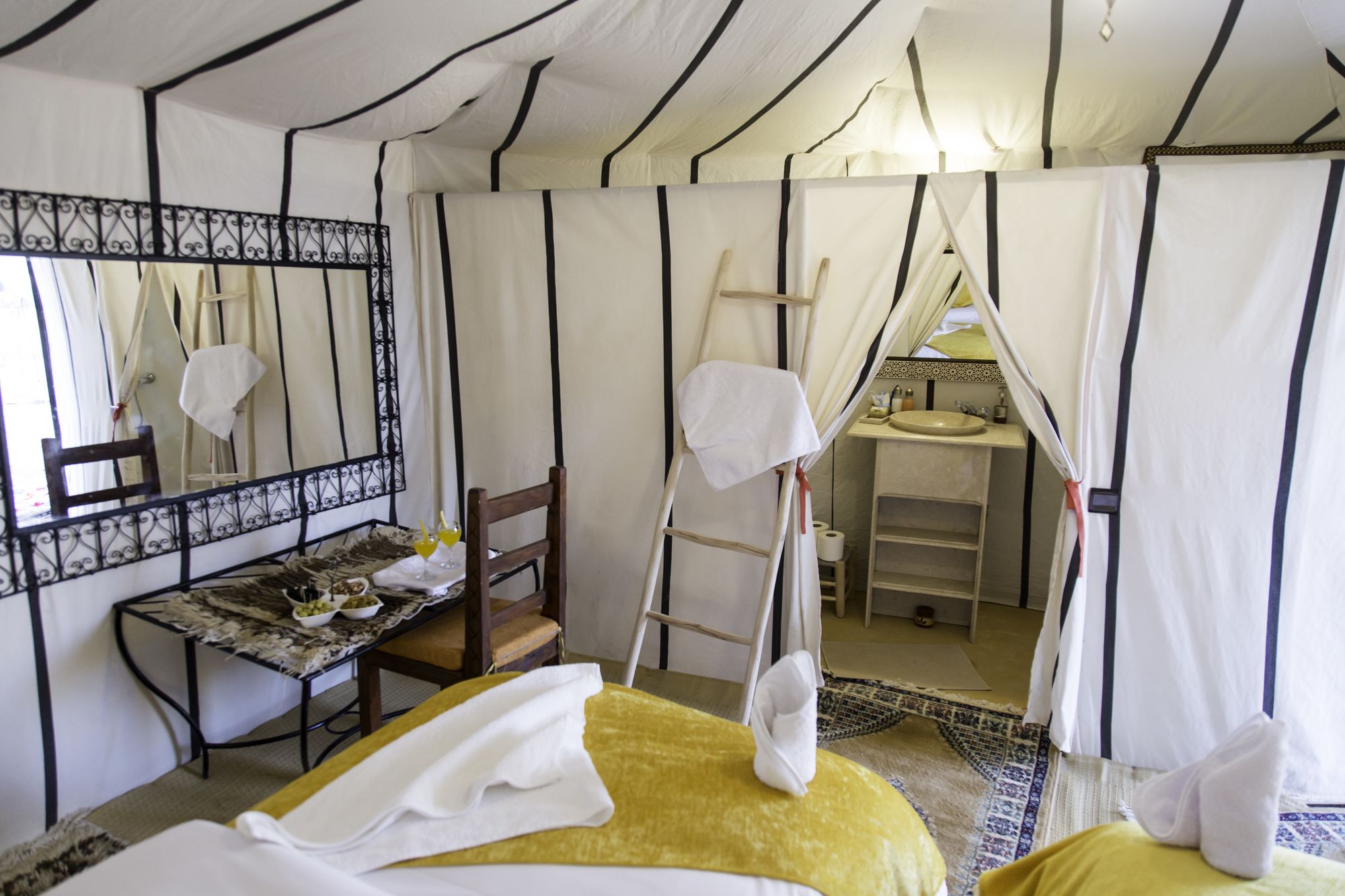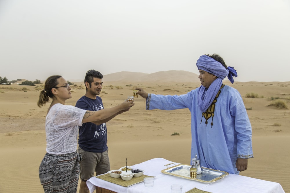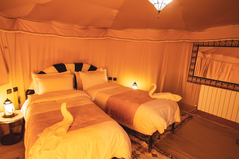 Si decides alojarte en Horaz Luxury Camp de Merzouga, apenas te separarán cinco minutos a pie de Erg Chebbi. Este tentalow se encuentra a pocos kilómetros de Palmeral de Igrane. Te sentirás como en tu propia casa en cualquiera de las 6 habitaciones. El baño privado con ducha está provisto de cabezal de ducha tipo lluvia y artículos de higiene personal gratuitos. Entre las comodidades, se incluyen escritorio y cortinas opacas, además de un servicio de limpieza disponible todos los días. Con bicicletas de alquiler y muchas otras instalaciones recreativas a tu disposición, no te quedará ni un minuto libre. Tienes también una terraza donde sentarte a contemplar el paisaje. Recorre rápida y cómodamente las principales atracciones de la zona gracias al servicio de transporte (de pago). Este tentalow te ofrece una cafetería si quieres darte un respiro, aunque también puedes disfrutar de una deliciosa comida en Horaz Luxury camp. Se sirve un desayuno continental gratuito todos los días de 7:00 a 8:30. Tendrás servicio de tintorería y atención multilingüe a tu disposición. Pagando un pequeño suplemento podrás aprovechar prestaciones como servicio de transporte al aeropuerto (ida y vuelta) (disponible las 24 horas) y aparcamiento sin asistencia gratuito.