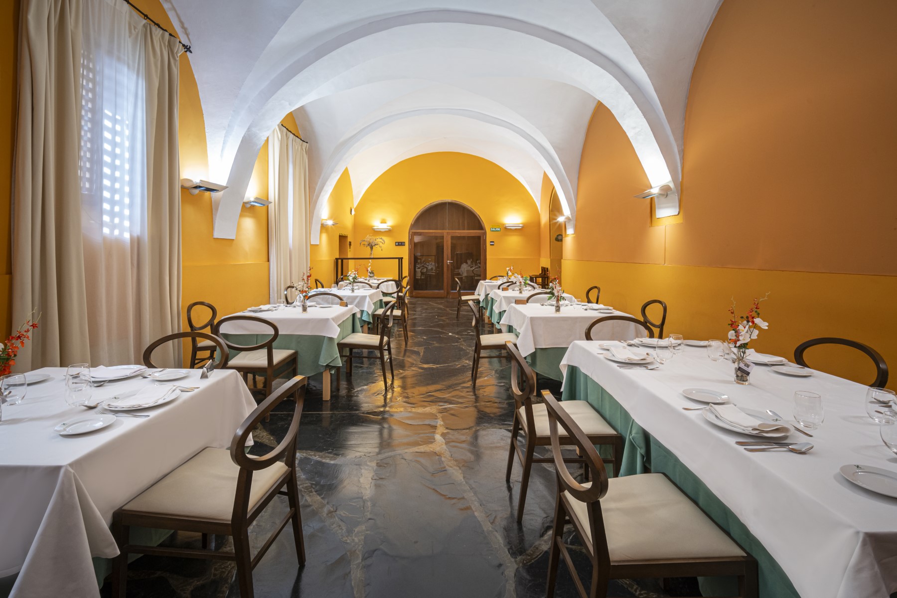 Entrar en el Hotel Hospedería Conventual de Alcántara, en la provincia de Cáceres, es adentrarse en la historia de finales del s. XV en Extremadura. En esta época se construye el Convento de San Bartolomé del que tomó posesión la orden de San Francisco y donde posteriormente se instala una fábrica de harina, cuya maquinaria aún puede admirarse expuesta en el hotel. La restauración del edificio respeta el espíritu de la construcción original, lo que confiere a este hotel un encanto, serenidad y relax difíciles de igualar, ofreciendo, sin embargo, las comodidades y servicios de un hotel selecto y moderno, como televisión de alta definición, internet wifi gratis, minibar y demás servicios en las habitaciones. El hotel consta de dos plantas y claustro porticado. En la iglesia se conserva la cúpula y el ya mencionado museo de máquinas de la fábrica de harina. El antiguo huerto es ahora un espacio natural donde disfrutar de la lectura a la sombra de los olivos, o de un agradable baño en la piscina. Entre nuestras instalaciones contamos con restaurante, cafetería con terraza, sala de reuniones, salón para eventos, amplio jardín, piscina, pista de padel, Spa y parking exterior.