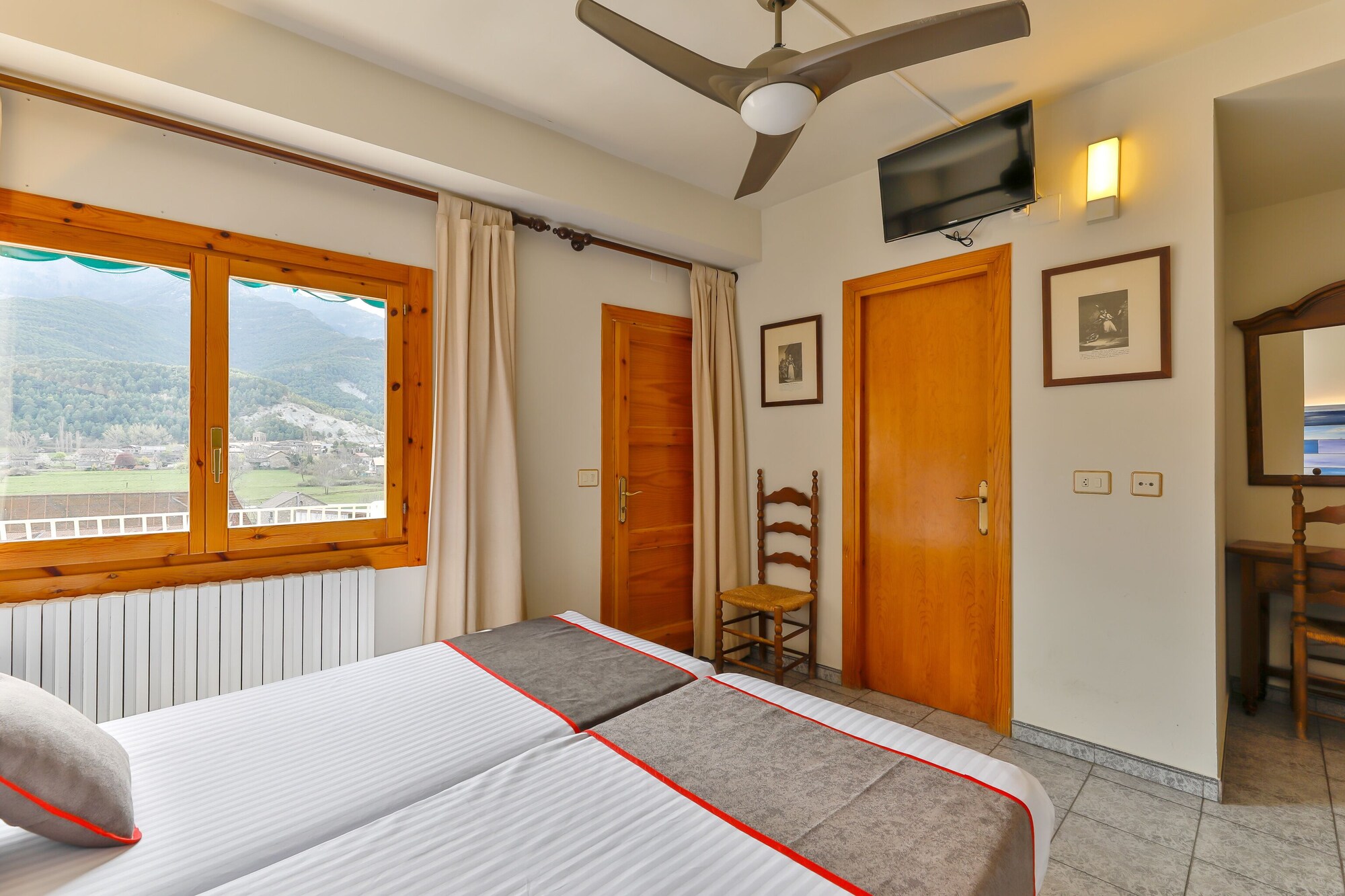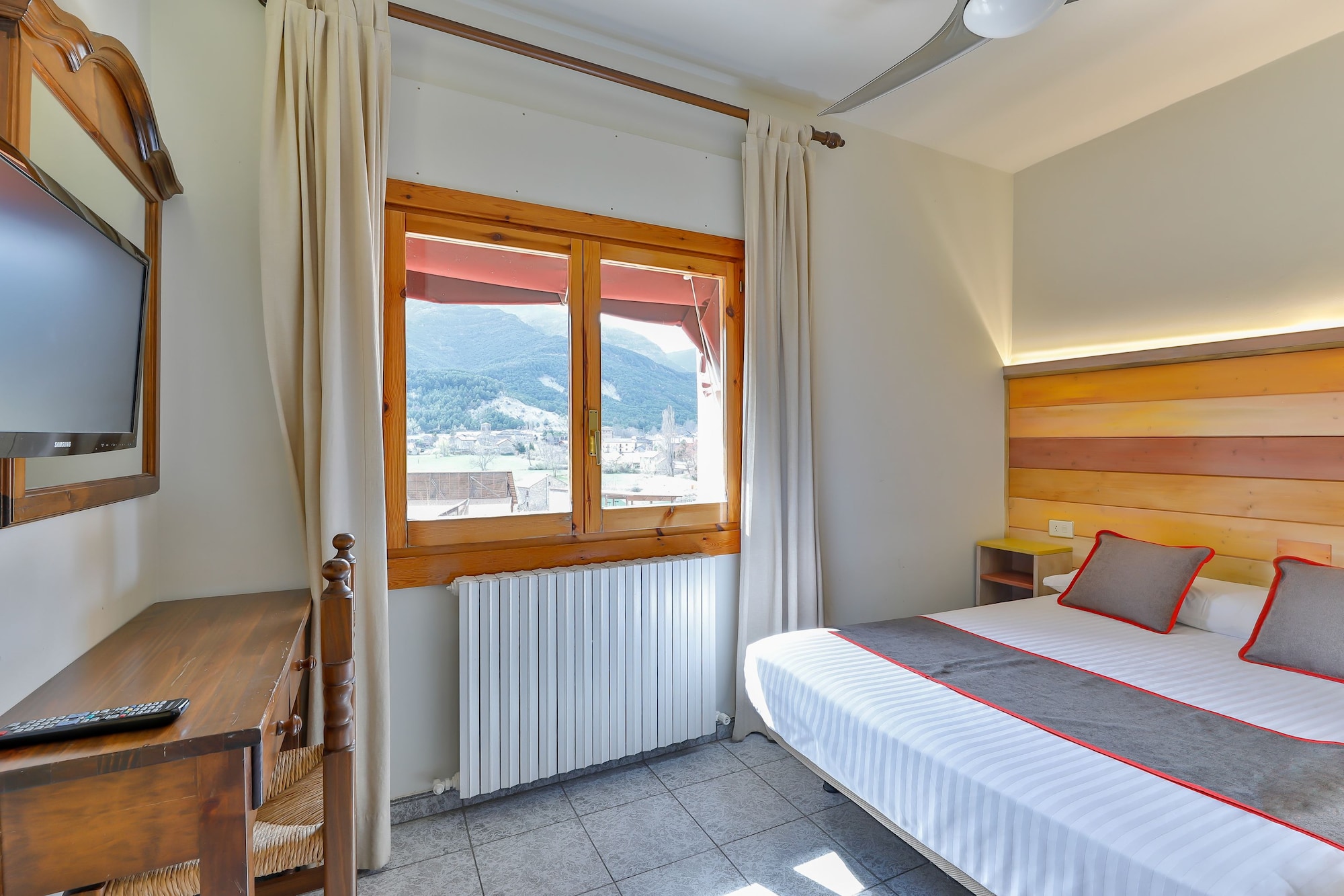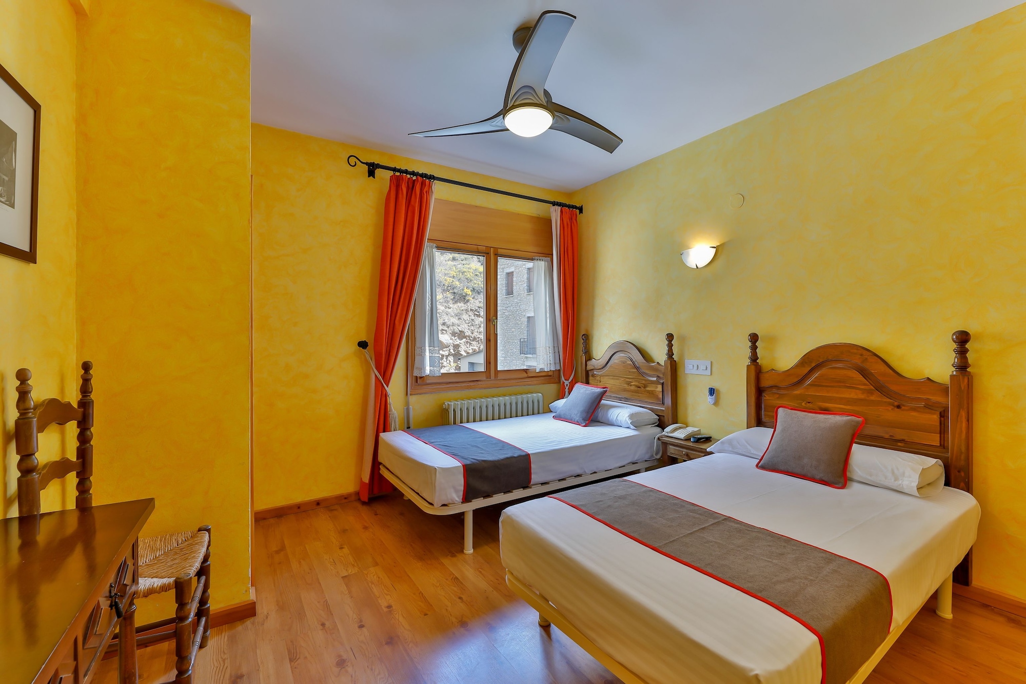 En Fiscal, Hostal Rio Ara Bellosta ofrece una espléndida ubicación a orillas del río, en los alrededores de Cañón de Acisclo y Parque Nacional de Ordesa Y Monte Perdido.Habitaciones Te sentirás como en tu propia casa en una de las 27 habitaciones con aire acondicionado. La conexión a Internet wifi gratis te mantendrá en contacto con los tuyos; también podrás ver tu programa favorito en el televisor con canales digitales. El cuarto de baño está provisto de ducha y secador de pelo. Las comodidades incluyen periódicos gratuitos y teléfono con llamadas locales gratuitas.Servicios Con una terraza donde descansar y comodidades como conexión a Internet wifi gratis y sala de juegos electrónicos o de mesa, ¡no te faltará de nada! Se ofrece además tienda de recuerdos o quiosco y asistencia turística y para la compra de entradas.Para comer En Rio Ara tendrás a tu disposición un restaurante o la posibilidad de tomar algo rápido en la cafetería. Apaga la sed con tu bebida favorita en el bar o lounge.Servicios de negocios y otros Tendrás depósito de equipaje y biblioteca a tu disposición. Hay un aparcamiento sin asistencia gratuito disponible.