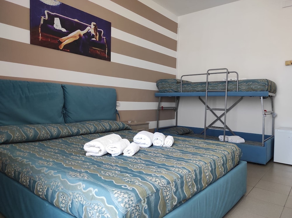 Las instalaciones y servicios incluyen aire acondicionado, bar, aparcamiento, WiFi, parque infantil y mascotas permitida bajo petición.La habitación cuenta con TV por cable/satélite, terraza, aire acondicionado, WiFi, teléfono, nevera, servicio de habitaciones, caja fuerte y habitaciones para no fumadores.Tenga en cuenta lo siguiente a continuación:Estancia Mínima Obligatoria: Estancia mínima 3 noches en todos los períodos. Excluyendo período 11/8-25/8 mínimo 5 noches.Servicio de Playa: incluye 1 sombrilla + 2 tumbonas por habitación.TARJETA CLUB: a pagar localmente en todos los periodos por día por persona 5 € por día. Incluye: Servicio de Playa 1 sombrilla + 2 hamacas en la playa frente al hotel, animación en la playa con juegos y torneos, animación en el hotel con veladas musicales y cabaret. Min1 Club 3/12 años en la playa y en el hotel.Dirección: Via Scalo Marittimo 35, 71012 Rodi Garganico, Italia.