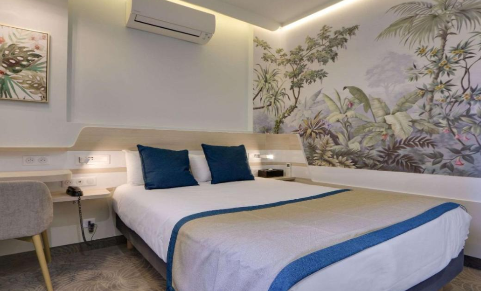 Ubicación - Este hotel privado se encuentra en el centro del famoso barrio de Montmartre. Está a pocos minutos de la basílica del Sagrado Corazón y muy cerca de una estación de metro. Podrá llegar fácilmente a muchos centros comerciales, tiendas y lugares de ocio de esta ciudad llena de vida.. Instalaciones - El hotel fue edificado en el año 1995. El alojamiento tiene un total de 65 habitaciones para acomodar a sus huéspedes. Hay un vestíbulo y servicios de recepción a disposición de los viajeros. Las distintas plantas del establecimiento son accesibles en ascensor. Las instalaciones incluyen una caja fuerte, un restaurante, un comedor y una sala de TV. La conexión Wi-Fi en las zonas públicas permite a los huéspedes mantenerse en contacto con el mundo exterior.. Habitaciones - En las habitaciones hay calefacción central y un cuarto de baño. Pequeños extras se encargan de proporcionar una estancia agradable, como conexión a Internet, teléfono, televisor y Wi-Fi. El cuarto de baño cuenta con una ducha. El hotel ofrece habitaciones de no fumadores. Copyright GIATA 2004 - 2016. Multilingual. Comidas - Es posible elegir desayuno.. Tarjetas de crédito - En el alojamiento se aceptan las siguientes tarjetas de crédito: American Express, Visa y MasterCard..