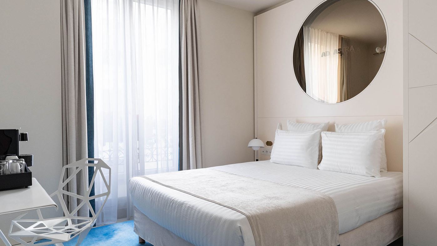 El hotel con 73 habitaciones, idealmente situado en el 29 de la Rue de Caumartin, en el distrito 9 de París, cerca de la Ópera Garnier, los Grandes Almacenes y la Place Vendôme. En honor a las estrellas francesas, cada planta temática sumerge a los visitantes en los universos de la estelar bailarina Marie-Agnès Gillot, de la astronauta Claudie Haigneré, del célebre actor y director Daniel Auteuil, y de la icónica familia del circo Bouglione.El Hôtel Astra Opéra ofrece una gama de servicios e instalaciones para satisfacer todas sus necesidades: nuestra zona de bienestar está abierta de 7:00 a 21:00 e incluye una piscina de 4x10 m, una sala de fitness, una sauna y un hammam, para garantizarle un momento de relajación y tranquilidad.