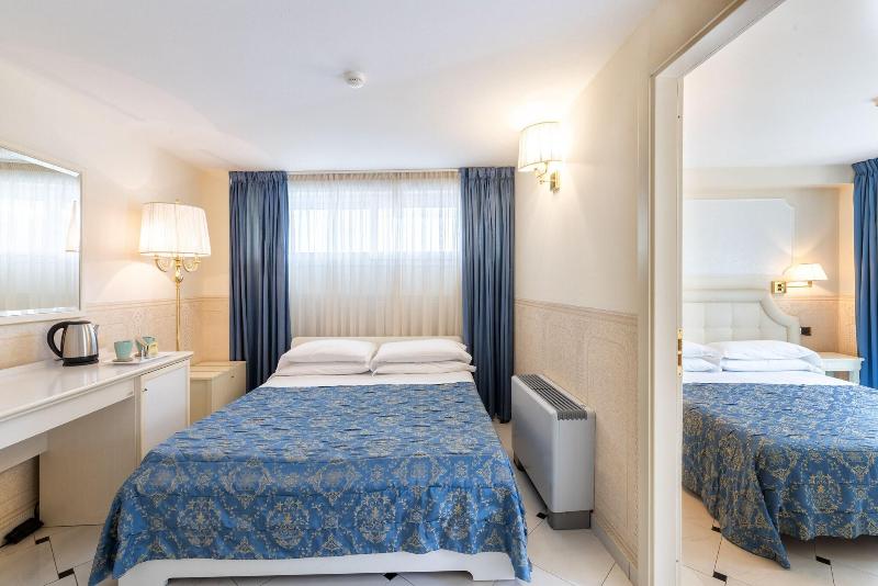 Este elegante hotel de 4 estrellas en Rimini, uno de los favoritos del difunto cantante Lucio Dalla, goza de una ubicación exclusiva frente al mar en el recién renovado paseo marítimo con su carril peatonal y para bicicletas. Este refinado hotel de estilo romagnolo ofrece habitaciones Economy y Classic, suites Family y Junior, todas con balcón e impresionantes vistas al mar. Los huéspedes pueden disfrutar de una piscina cubierta climatizada de agua salada, sauna, duchas sensoriales y una zona de relajación. El elegante restaurante con vistas al mar sirve desayunos y cenas. Durante el verano, la terraza del quinto piso ofrece una vista panorámica única de 360° de la campiña de Romagna. Hay bicicletas urbanas disponibles para los huéspedes, y el aparcamiento se encuentra a poca distancia (bajo petición, con reserva y de pago). El hotel también tiene acuerdos con playas en la hermosa Bahía de San Giuliano.