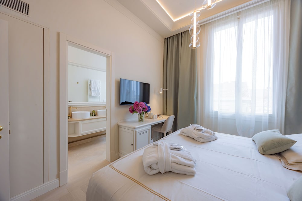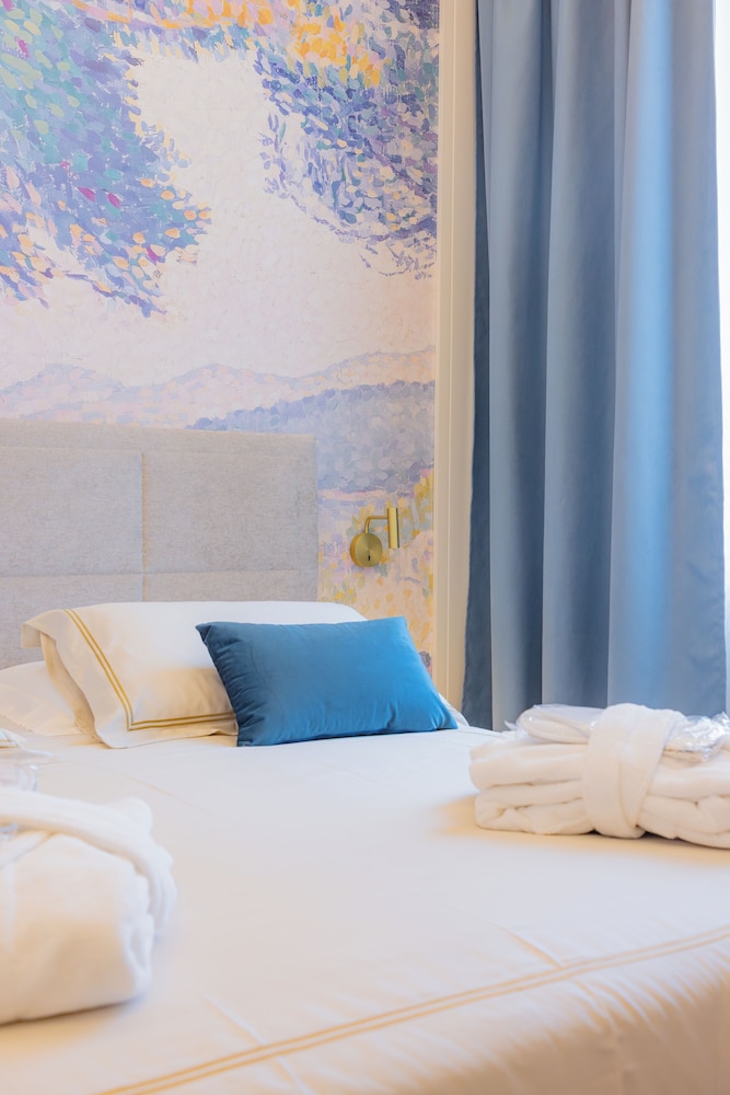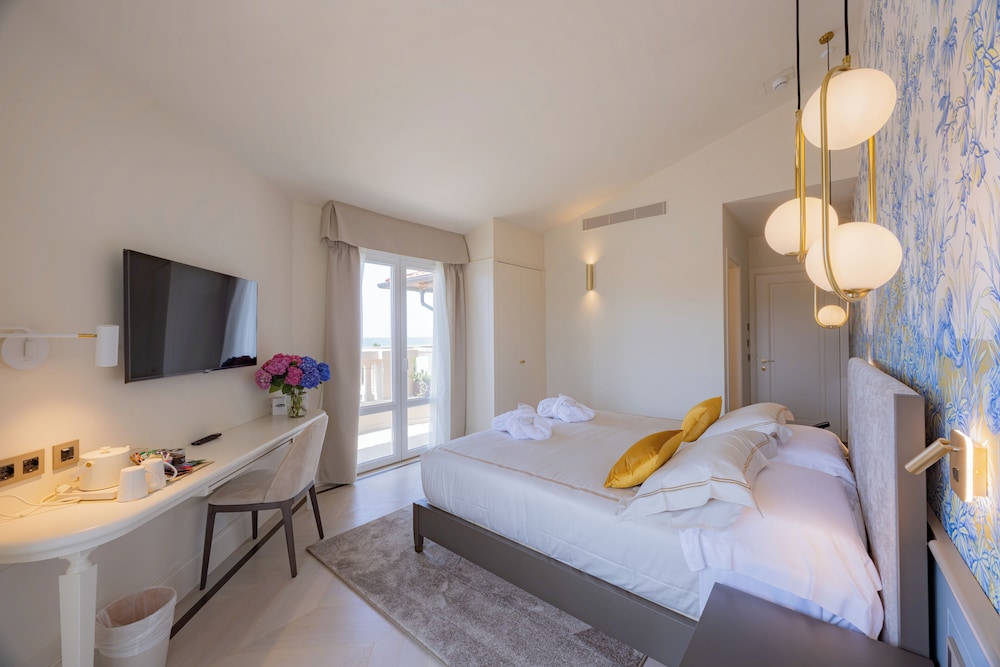In the Tuscan district of Forte dei Marmi, Hotel Belvedere has a bar. It is situated 2.1 miles from Tonfano Beach and 200 meters from Forte dei Marmi Beach. The three-star hotel has air-conditioned rooms with free WiFi, a private bathroom, and a shared lounge. The accommodation offers guests a concierge service and room service.The hotel has desks in each of its rooms. Every room has a safety deposit box; some have a patio, and some have views of the sea. The rooms at Hotel Belvedere include with free toiletries and a flat-screen TV. Every morning there's a continental, buffet, or Italian breakfast offered. Cycling is a popular activity in the area, and the resort offers bike rentals. Address Via Iv Novembre, 5 Forte dei Marmi 55042 Italy