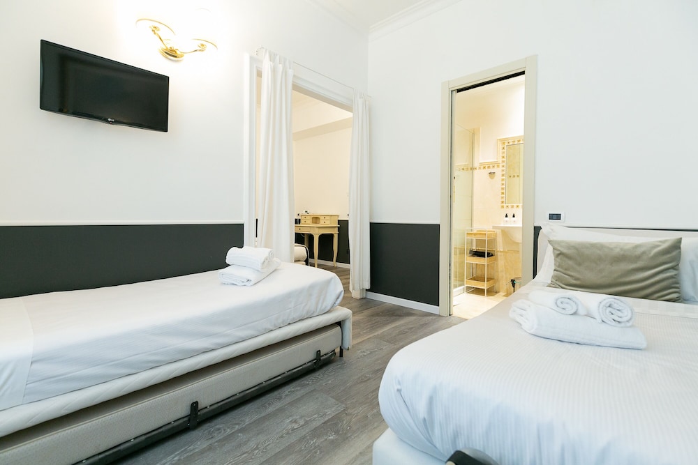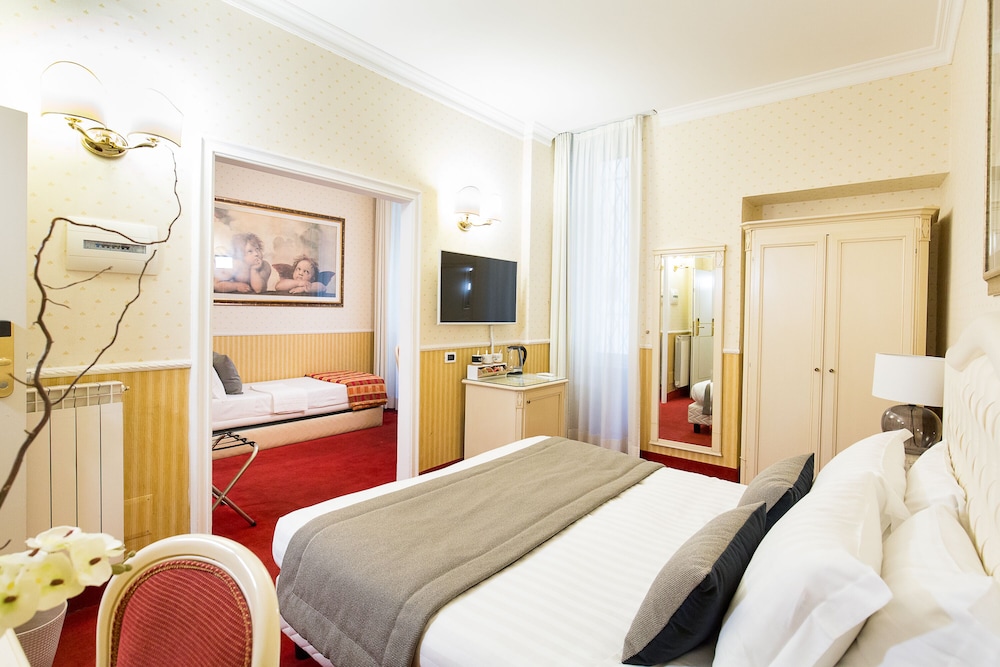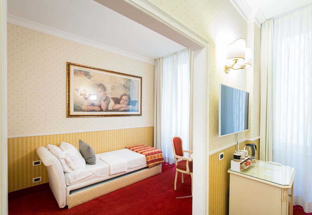 Si te alojas en Hotel Capitolium - Town House Suite, en Roma (Centro histórico de Roma), estarás a pocos minutos de Porta Pia y de Termas de Diocleciano. Esta casa adosada se encuentra cerca de Foro Romano y de Coliseo.Habitaciones Te sentirás como en tu propia casa en una de las 13 habitaciones con aire acondicionado y minibar. La conexión a Internet wifi gratis te mantendrá en contacto con los tuyos; también podrás ver tu programa favorito en el televisor con canales por satélite. El cuarto de baño está provisto de ducha y bañera combinadas y secador de pelo. Las comodidades incluyen caja fuerte, escritorio y la posibilidad de solicitar tabla de planchar con plancha. Aprovecha los prácticos servicios que se te ofrecen, como conexión a Internet wifi gratis o servicio de niñera (de pago).Para comer Aprovecha el servicio de habitaciones con horario limitado de esta casa adosada.Servicios de negocios y otros Tendrás servicio de limusina o coche con chófer, depósito de equipaje y caja fuerte en recepción a tu disposición. Pagando un pequeño suplemento podrás aprovechar prestaciones como servicio de transporte al aeropuerto (ida y vuelta) (a petición) y aparcamiento sin asistencia (de pago).