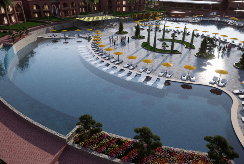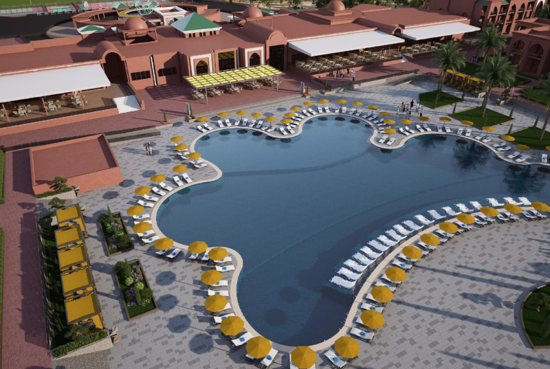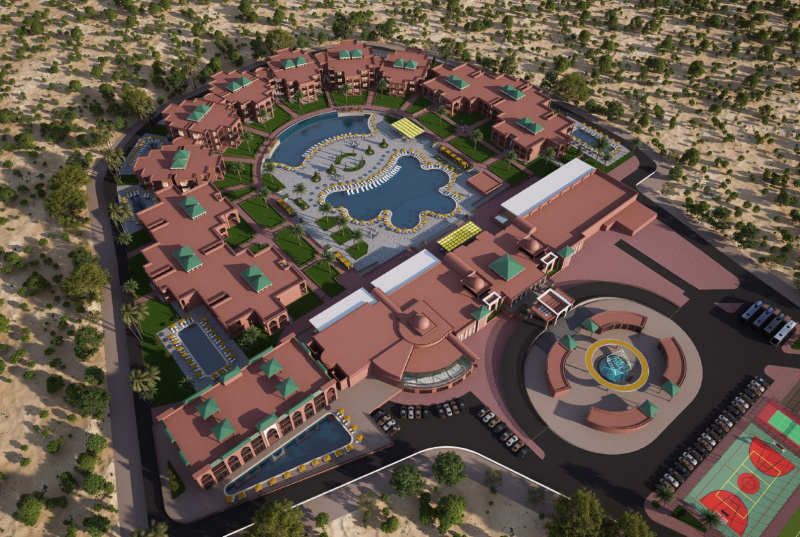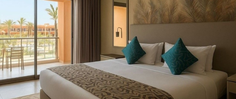 Este hotel de conferencias, ideal para familias, esta situado a 10 km del centro de la ciudad y de la medina, y da a un palmeral. Gueliz esta a 15 minutos de trayecto de este complejo spa y el aeropuerto de Menara dista unos 10 km.Esta villa de vacaciones es un autentico paraiso de tranquilidad, su preciosa arquitectura se mezcla con el frondoso paisaje de las palmeras. La fina decoracion artesanal del hotel recuerda al puro arte marroqui. Se trata de un hotel de conferencias con aire acondicionado y 324 habitaciones, vestibulo con servicio de salida y recepcion 24 horas, caja fuerte, servicio de cambio de divisas, prensa, club infantil, cafeteria, bar, discoteca y restaurante. Tambien se puede hacer uso de las instalaciones para conferencias, el servicio de lavanderia, el aparcamiento y el servicio de alquiler de bicicletas.Cada habitacion dispone de cuarto de bano, cama doble o extra grande, telefono de linea directa, TV via satelite, aire acondicionado y balcon o terraza particular.Ademas, cuenta con una piscina al aire libre con chiringuito y terraza dotada de tumbonas y sombrillas. Se ofrece gimnasia acuatica y aerobic, tambien hay gimnasio y una seleccion de tratamientos spa y masajes para disfrutar. Otras actividades deportivas y de ocio disponibles en el hotel son tenis, ping-pong, dardos, voleibol, petanca, montar a caballo o en bicicleta. Ademas, el hotel ofrece programas de animacion para adultos y ninos.