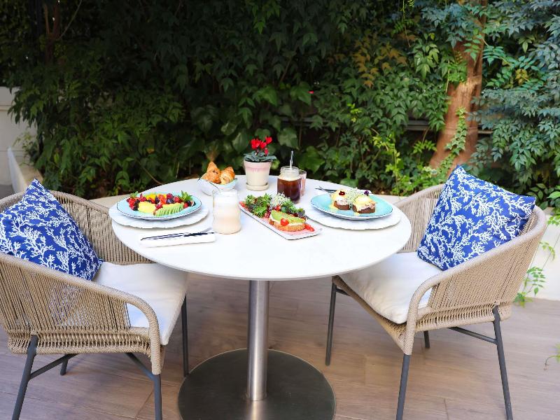 El hotel Croisette Beach Cannes - MGallery cuenta con 94 habitaciones de estilo bohemio y chic. Un remanso de paz único con numerosos servicios: piscina exterior climatizada, jardín, playa y restaurante privados, bar, servicio de habitaciones, sala de reuniones, gimnasio. En el centro de Cannes, cerca de la Croisette y del Palais des Festivals, es el lugar perfecto para prolongar tu estancia. Estilo de complejo turístico costero del arquitecto Jean Philippe NUEL.