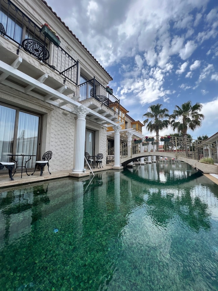 Si te alojas en Hotel De Gold Alacati, en Çesme (Alacati), estarás a pocos pasos de Mezquita de Pazaryeri y a unos minutos de Playa de Ilica. Este hotel se encuentra cerca de Alacati Marina y de Playa Alacati. Te sentirás como en tu propia casa en una de las 10 habitaciones con aire acondicionado, frigorífico y televisor de pantalla plana. Las habitaciones disponen de balcón. La conexión a Internet wifi gratis te mantendrá en contacto con los tuyos; también podrás ver tu programa favorito en el televisor con canales por cable. El cuarto de baño está provisto de artículos de higiene personal gratuitos y secador de pelo. Con piscina al aire libre y muchas otras instalaciones recreativas a tu disposición, no te quedará ni un minuto libre. Tienes también una terraza y jardín donde sentarte a contemplar el paisaje. Tienes una cafetería a tu disposición para comer algo, pero si lo prefieres, puedes llamar al servicio de habitaciones con horario limitado de este hotel. Mientras te das un chapuzón puedes pedir tu bebida favorita en el bar de la piscina. Tendrás periódicos gratuitos en el vestíbulo, servicio de recepción 24 horas y depósito de equipaje a tu disposición. Hay un aparcamiento sin asistencia gratuito disponible.