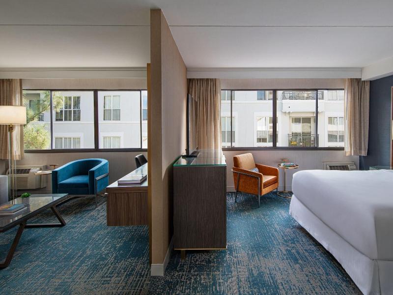 Con una ubicación céntrica en Pasadena, Hotel Dena, a Tribute Portfolio Hotel, se encuentra a 6 minutos a pie del Pasadena Convention Center y a 12 minutos del Pasadena Playhouse. Este elegante hotel está a 4 km del Rose Bowl Stadium y a 13, 2 km del Santa Anita Park. Disfruta de opciones recreativas como una piscina al aire libre y un gimnasio. El hotel también ofrece wifi gratis, servicios de conserjería y tiendas de regalos. Alójate en una de las 311 habitaciones con televisores LED y programación digital. Los baños parcialmente abiertos incluyen combinaciones de ducha/bañera, artículos de tocador de diseño y secadores de pelo. Las comodidades incluyen teléfonos, escritorios y cafeteras/teteras. El restaurante Lyric del hotel sirve cocina americana para el almuerzo y la cena. También hay una cafetería y servicio de habitaciones (con horario limitado). Relájate con una bebida en el bar/salón. Se sirve desayuno completo todos los días (de 7:00 a 10:30, con cargo). Los servicios destacados incluyen un centro de negocios, servicios de tintorería/lavandería y recepción 24 horas. El hotel ofrece un centro de conferencias y salas de reuniones para eventos. Hay aparcamiento disponible (de pago).