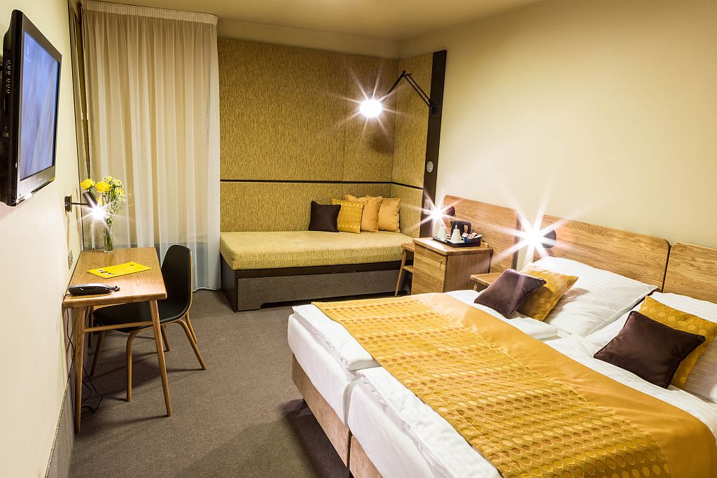 Todas las modernas habitaciones de reciente renovacin (obras en 2014) ofrecen una pantalla plana de TV por Satlite y un cuarto de bao privado con ducha y secador de pelo. Los huspedes pueden cenar al restaurante del hotel que sirve cocina checa e internacional y se ubica en el edificio principal, a 50 metros de distancia. Los huspedes del Hotel Golf Dependence pueden utilizar las instalaciones del hotel de golf, spa con sauna y jacuzzi privado con pago adicional, un gimnasio gratuito, almacenamiento de equipaje gratis y servicio de recepcin las 24 horas. El aparcamiento est justo en frente del hotel y es gratuito.