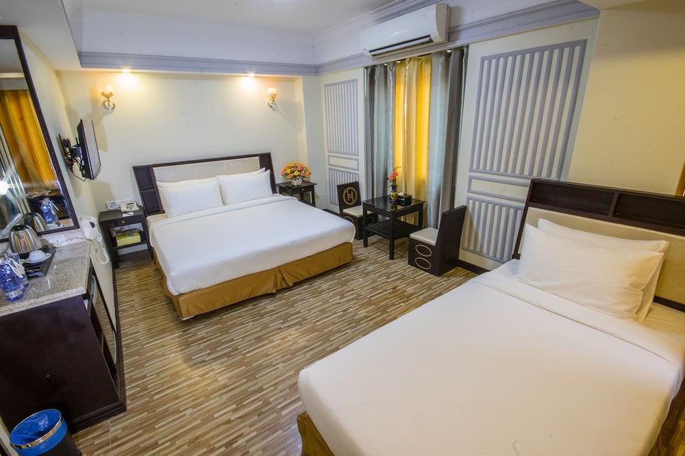 Si te alojas en Hotel Heaven Yangon, en Yangn (Mayangone), estars a poca distancia de Centro de Convenciones de Myanmar y Lago Inya. Este hotel se encuentra cerca de Universidad Tecnolgica de Yangn y de Pagoda Kyauk Taw Gyi. Te sentirs como en tu propia casa en cualquiera de las 55 habitaciones con aire acondicionado, minibar y televisor de pantalla plana. La conexin a Internet wifi gratis te mantendr en contacto con los tuyos; tambin podrs ver tu programa favorito en el televisor con canales por cable. El bao privado con baera o ducha est provisto de artculos de higiene personal gratuitos y secador de pelo. Entre las comodidades, se incluyen escritorio y hervidor elctrico, adems de un servicio de limpieza disponible todos los das. Este hotel dispone de espacios para fumadores. Si tienes hambre, pasa por el restaurante de este hotel, que ofrece almuerzos y cenas, o llama al servicio de habitaciones con horario limitado. Apaga la sed con tu bebida favorita en el bar o lounge. Tendrs tintorera o lavandera, un servicio de recepcin las 24 horas y un ascensor a tu disposicin. Hay un aparcamiento sin asistencia gratuito disponible.