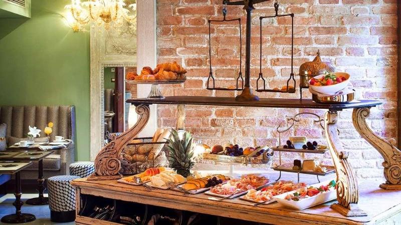 Ubicado en el corazón de la Venecia tradicional, en el Sestiere de Cannaregio, el Hotel Heureka combina la comodidad de un hotel boutique, la atmósfera íntima de un hogar y la belleza mágica de un palazzo veneciano del siglo XVI. Los interiores del hotel son un fascinante mosaico de estilos que da a cada espacio un aspecto único y muy original. Cada una de nuestras 10 habitaciones tiene su propio diseño e identidad distintivos, donde el legado de la historia y la tradición venecianas, cuidadosamente preservado por la reciente restauración, se combina hábilmente con muebles y telas contemporáneos. Se han encargado pinturas de Julian Khol exclusivamente para el hotel, interpretando el espíritu de cada habitación. El resultado es una atmósfera única que convierte al Hotel Heureka en un refugio mágico, que personifica la comodidad y el lujo. Nuestro desayuno buffet se sirve en nuestro encantador salón o bajo los árboles centenarios del jardín privado del hotel. Nos enorgullecemos de servir desayunos de temporada y recién hechos todos los días, utilizando solo los mejores productos locales. En el acogedor bar, disfruta de un aperitivo o un digestivo, con una carta completa de cócteles servidos a tu gusto. El palazzo esconde un verdadero tesoro: el jardín. En los días cálidos, es un remanso de paz y frescura, el refugio ideal para relajarse, contemplando el frondoso dosel de los árboles. Al caer la noche, déjate cautivar por el encanto y el ambiente de nuestro jardín y tómate un tiempo para observar las estrellas.